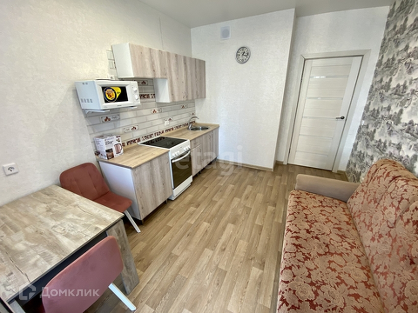 Сдаётся однокомнатная квартира на длительный срок с новым ремонтом. Есть всё необходимое для комфортного проживания: новый кухонный гарнитур, стиральная машина автомат, обеденный стол, два стула, холодильник, двуспальная кровать. Балкон застеклен, но не утеплен, магазины и аптеки в шаговой доступности, хорошая транспортная развязка.
