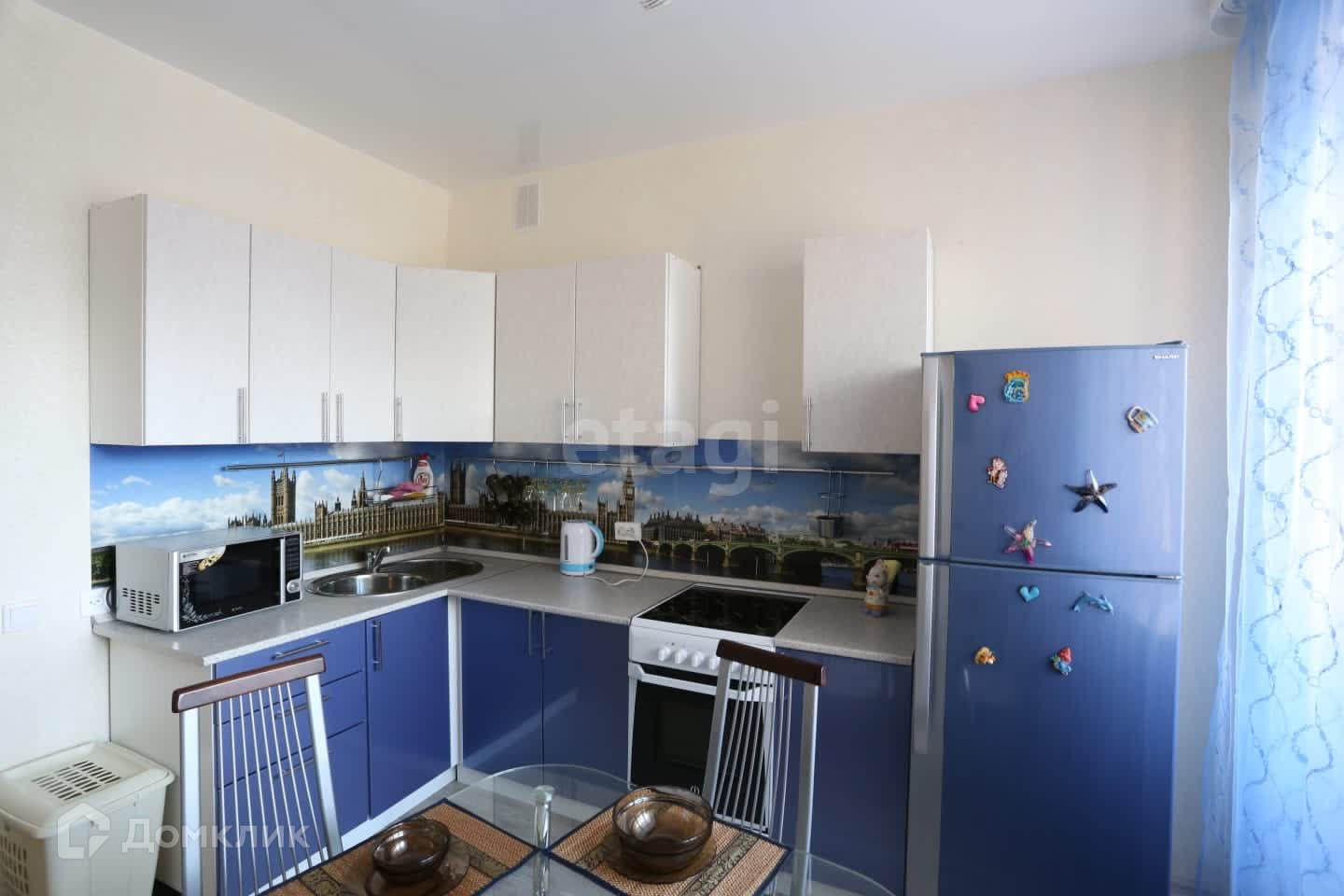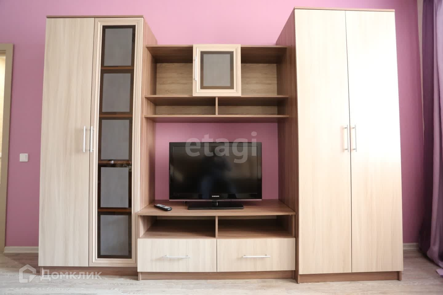 В квартире есть Новый смарт телевизор с диагональю 109 см. и голосовым управлением.