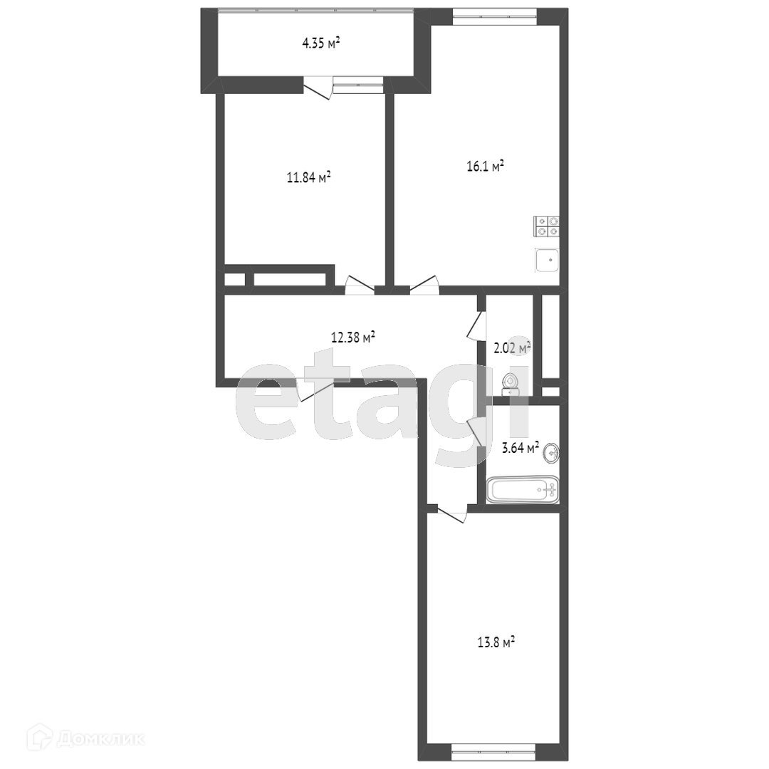 Балкон, лоджия 1 балкон