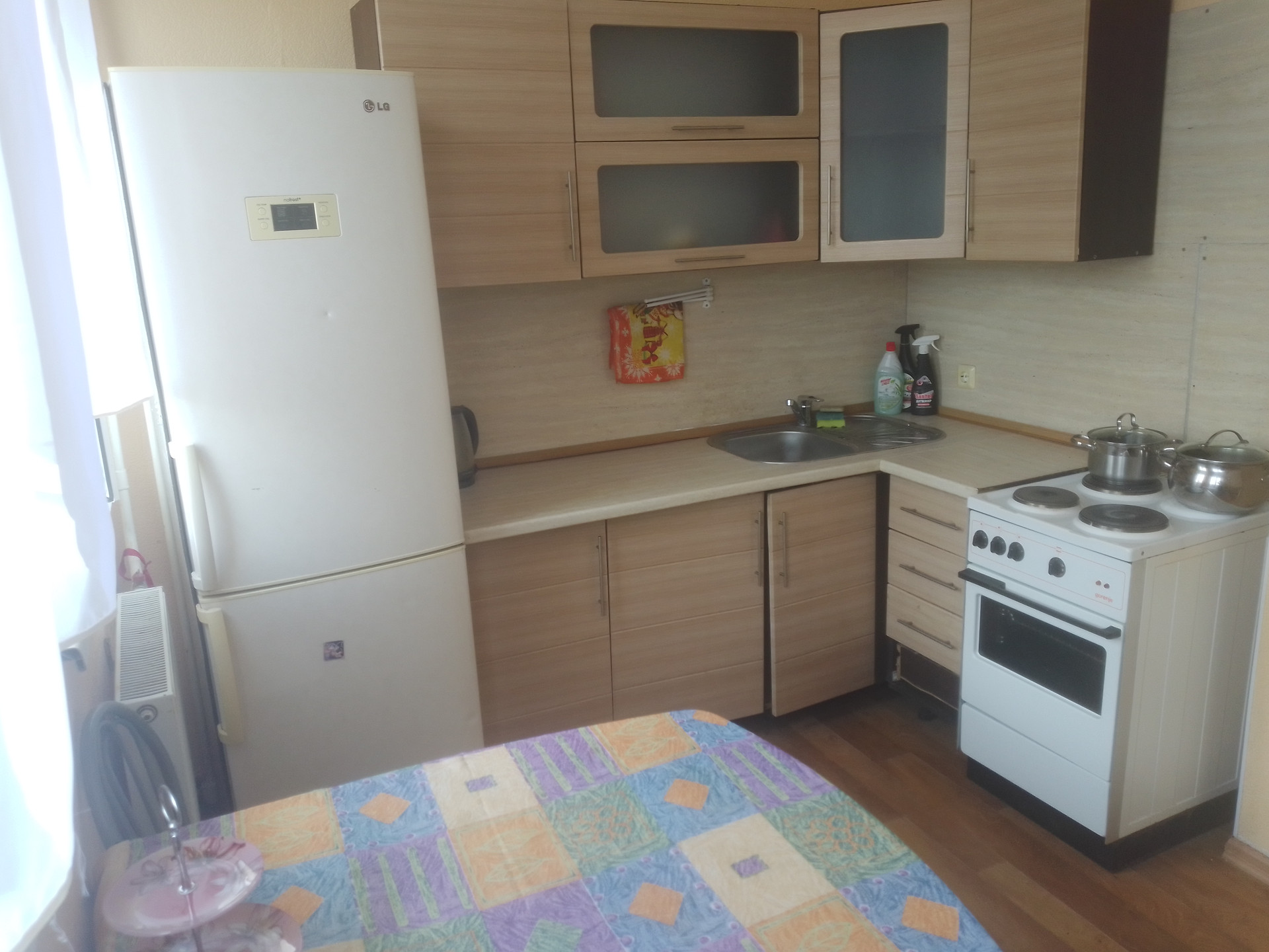 Однокомнатная квартира с косметическим ремонтом. Чистая, уютная. Большая лоджия. Кухонный гарнитур,посуда, большой холодильник,Эл. плита, стиральная машина, большой зеркальный шкаф-купе, велюровый диван- кровать, стенка, на окнах шторы, светодиодные светильники с пультом управления и другие приятные мелочи.Рядом рынок Михайловский, ТРЦ Кристалл, Ашан, O KЕЙ. 10-15 минут пешком. В общем жить можно !Остановка автобусов в 30 метрах от входа в дом.