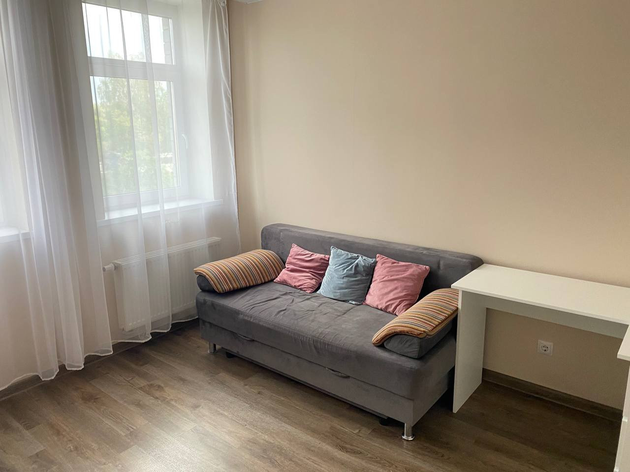 Вторая комната: диван, комп стол, стол обычный (я использовала для косметики) пуфик