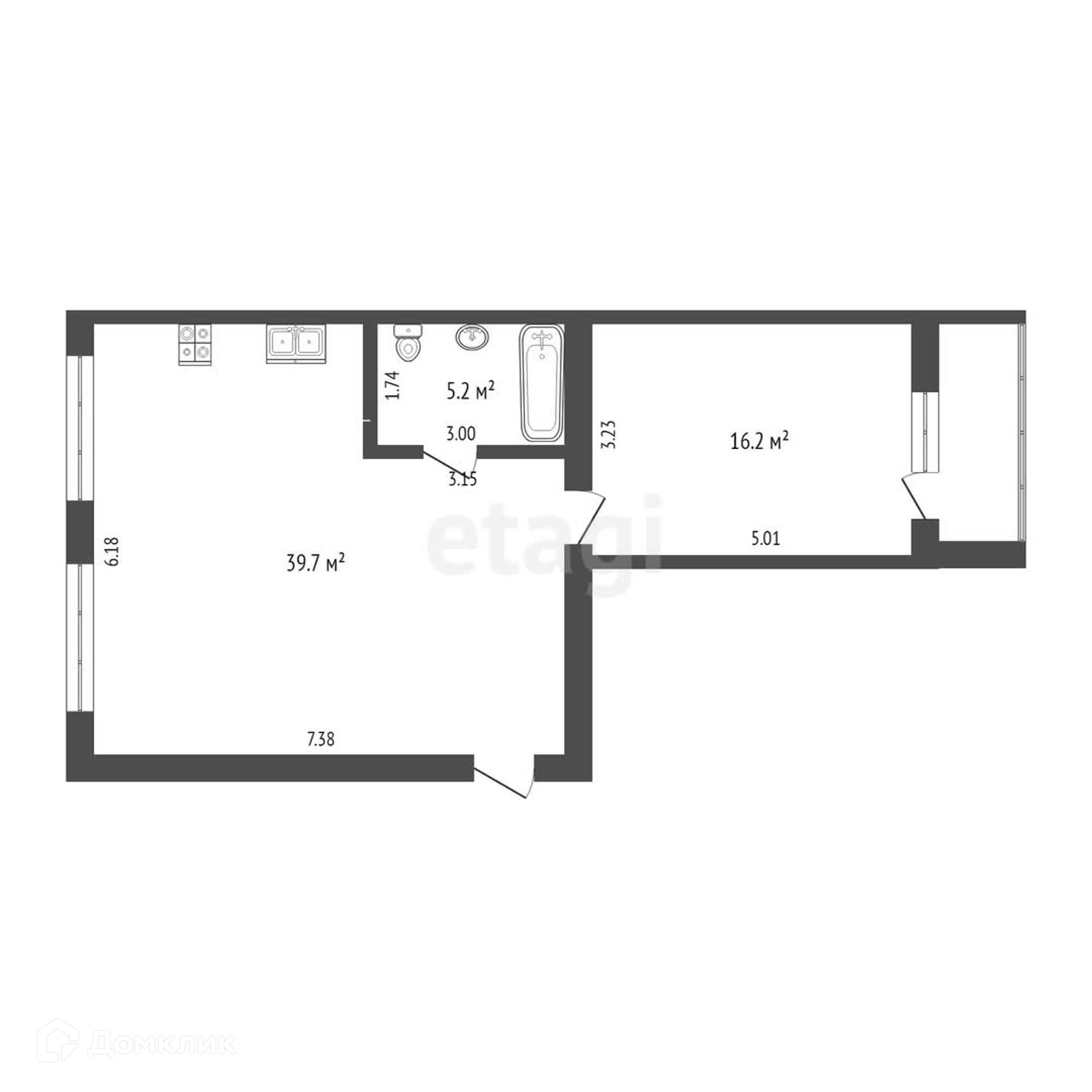 Общая площадь 61 м2