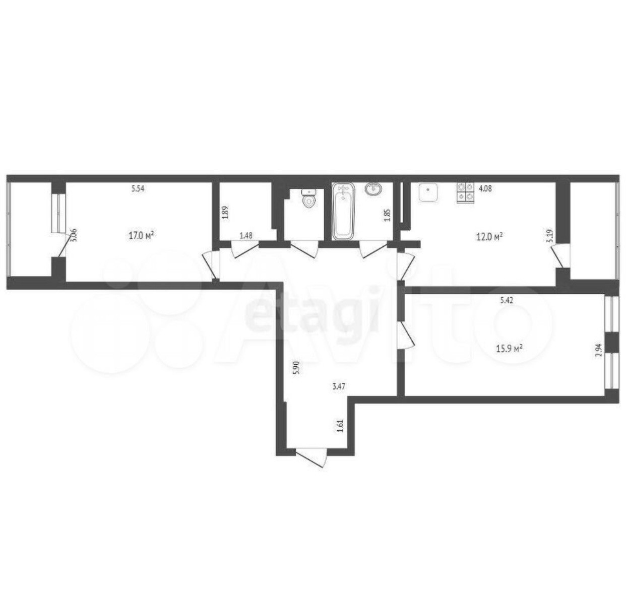 Общая площадь 66.6 м2