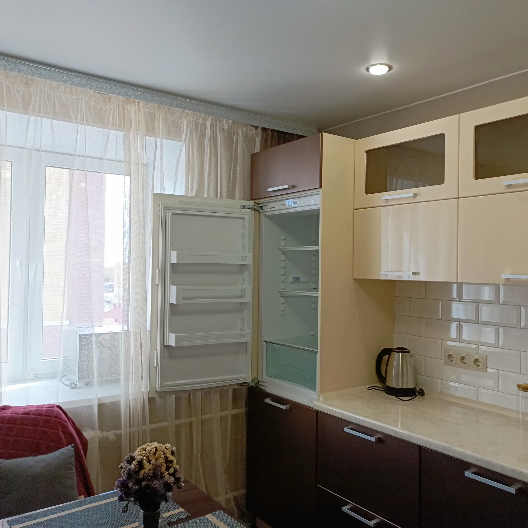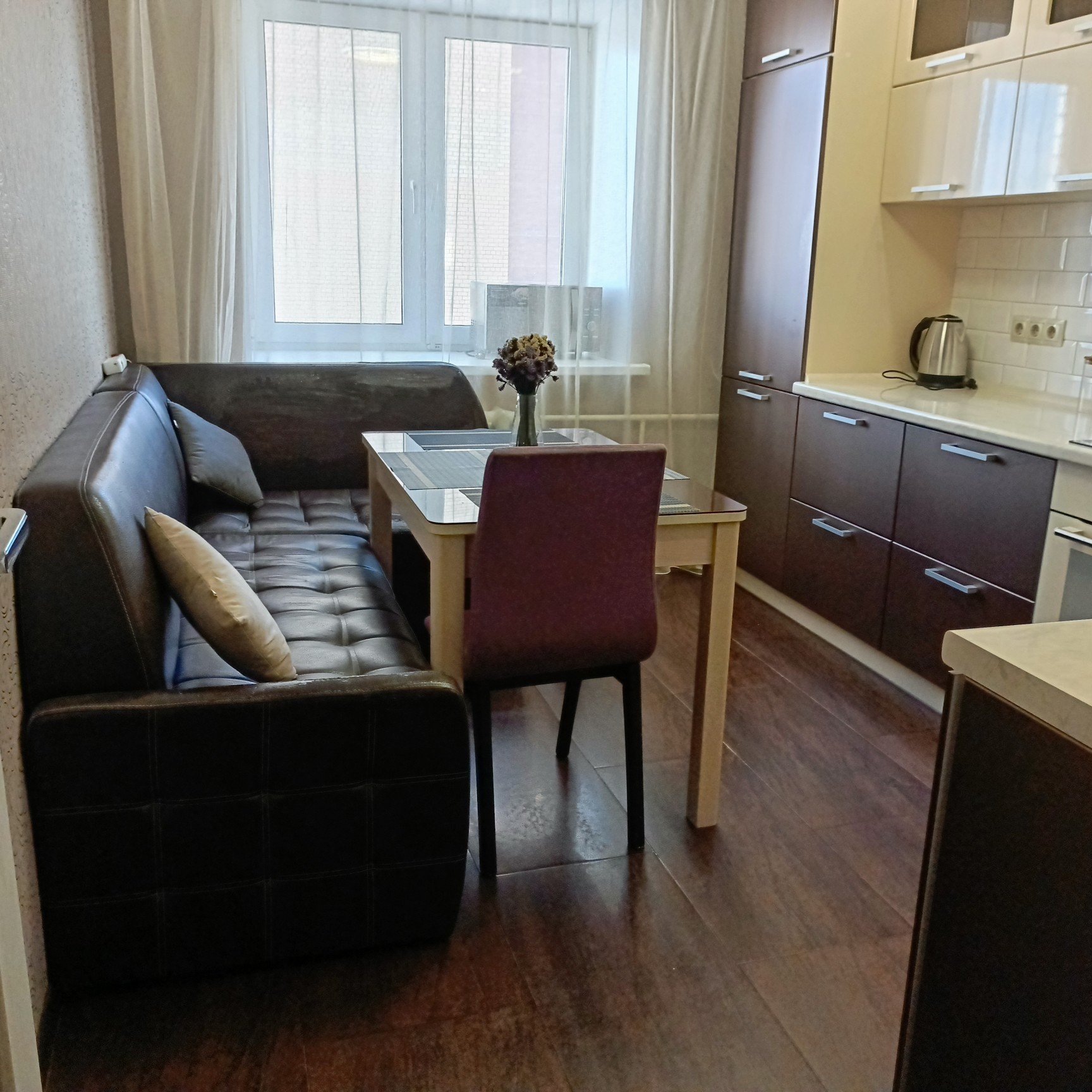 - на кухне имеется диван (раскладывается на 1.5 спальных места);