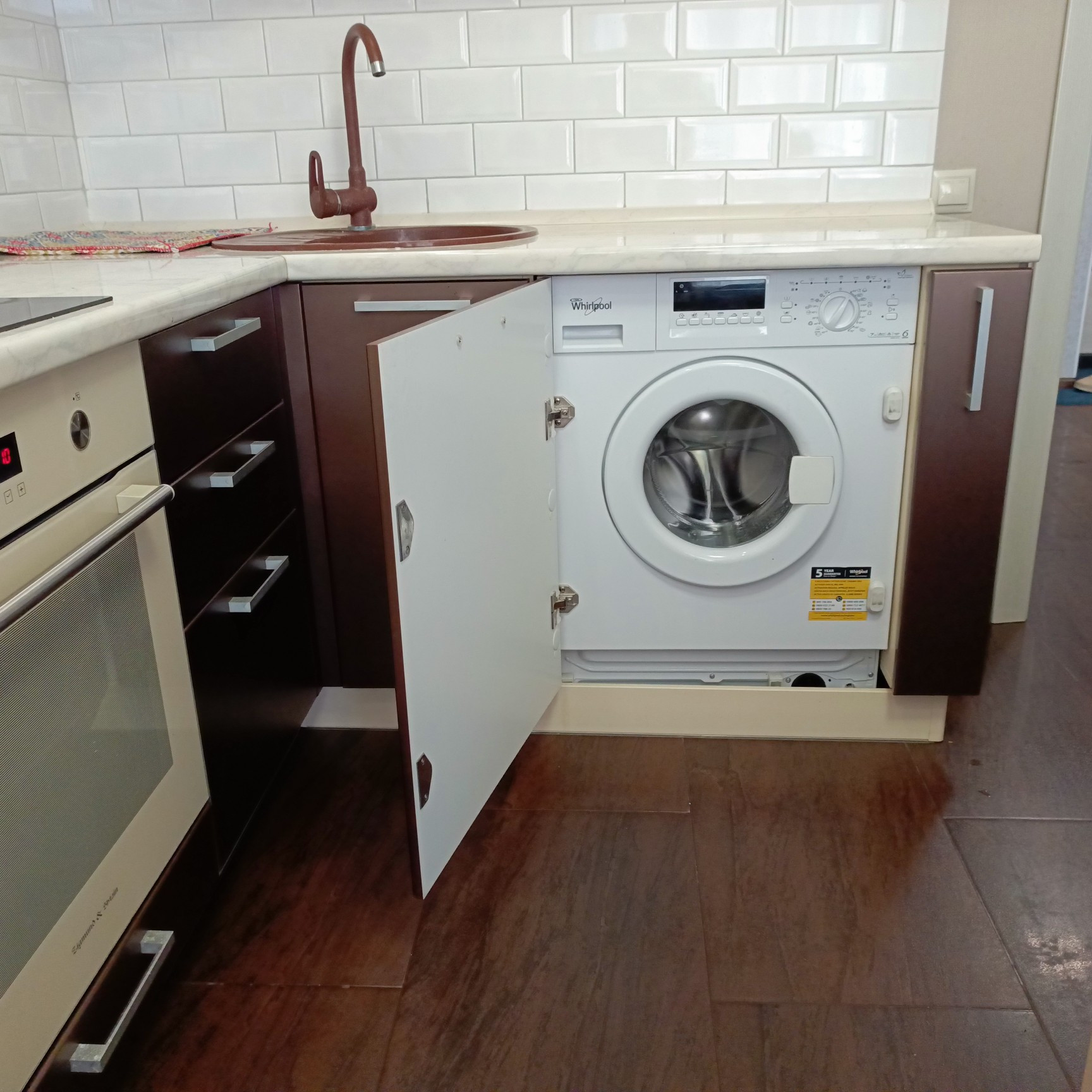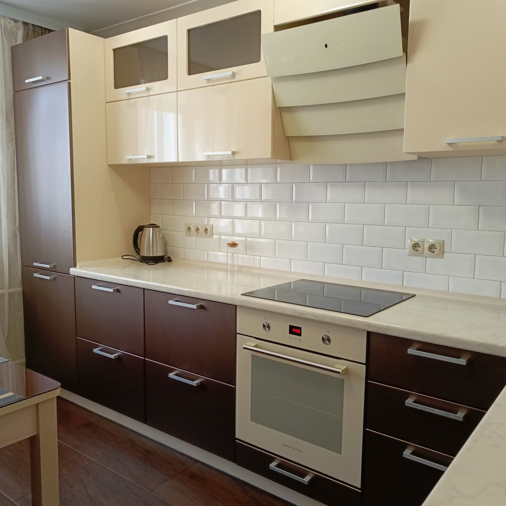 - бытовая техника: чайник, варочная панель, духовой шкаф, холодильник, стиральная машинка, микроволновка;