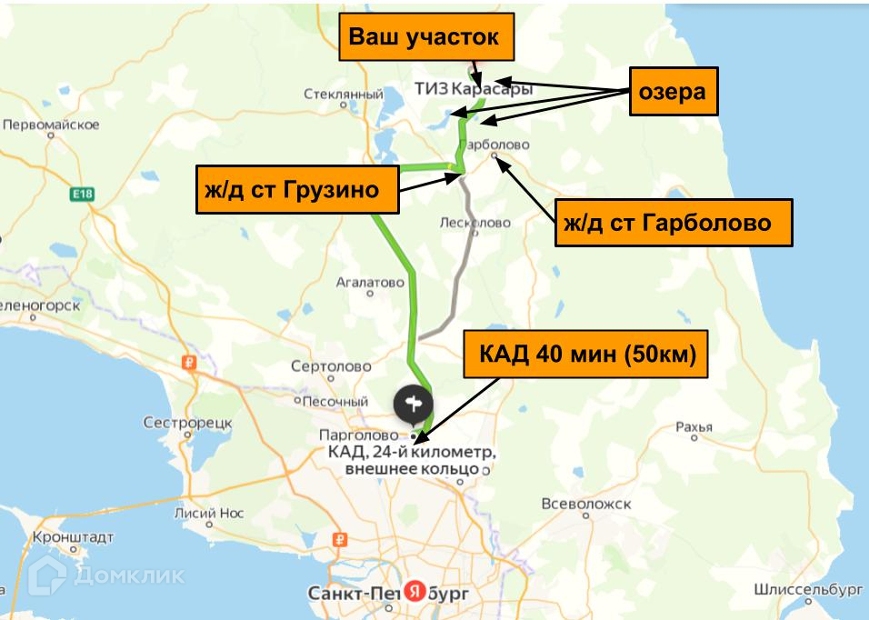 • Расстояние от КАД 50 км, время в пути приблизительно составит 40 минут