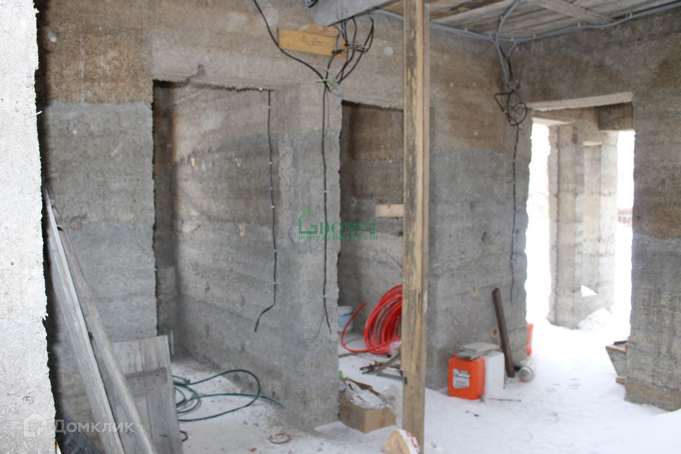 Дом 2-х этажный, из арболита, на первом этаже по проекту большая кухня-гостиная, гостевая спальня, гардеробная и сан узел. На втором этаже 2 сан узла и 3-4 спальни. Также к дому пристроен гараж на 2 машины +сауна. В доме теплый пол и на 1 этаж заведено электричество. Также есть помещение для бойлерной.
