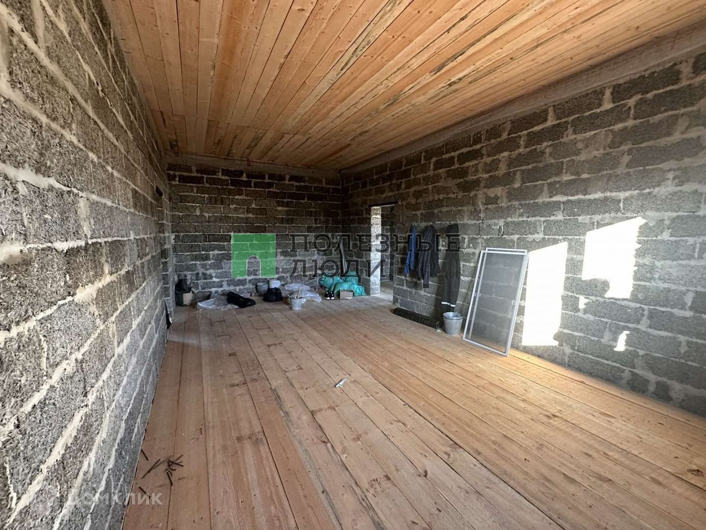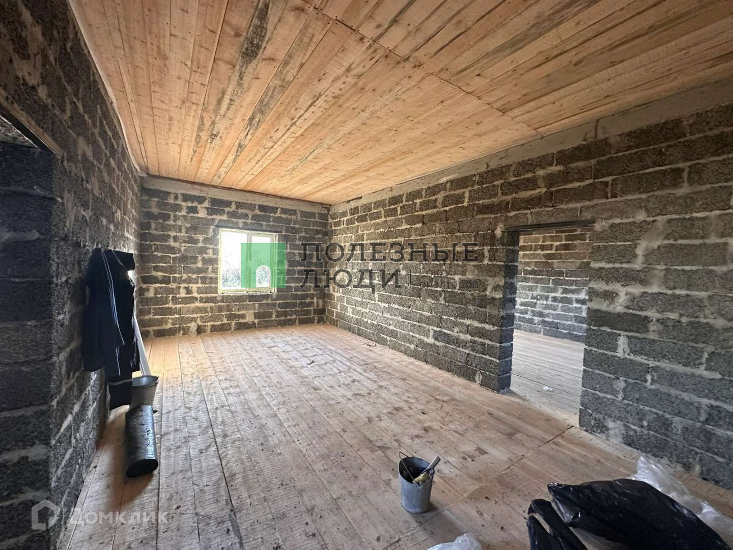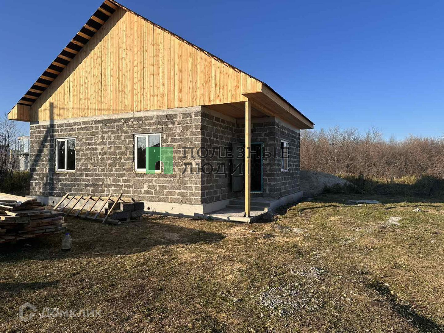Дом стоит стоит на ленточном фундаменте. Построен из арбалитовых блоков. Крыша деревянная. Покрыта андулином. Утепленный потолок. Вставлены пластиковые окна. Дом с черновой отделкой. Возможно доделать мансарду.
