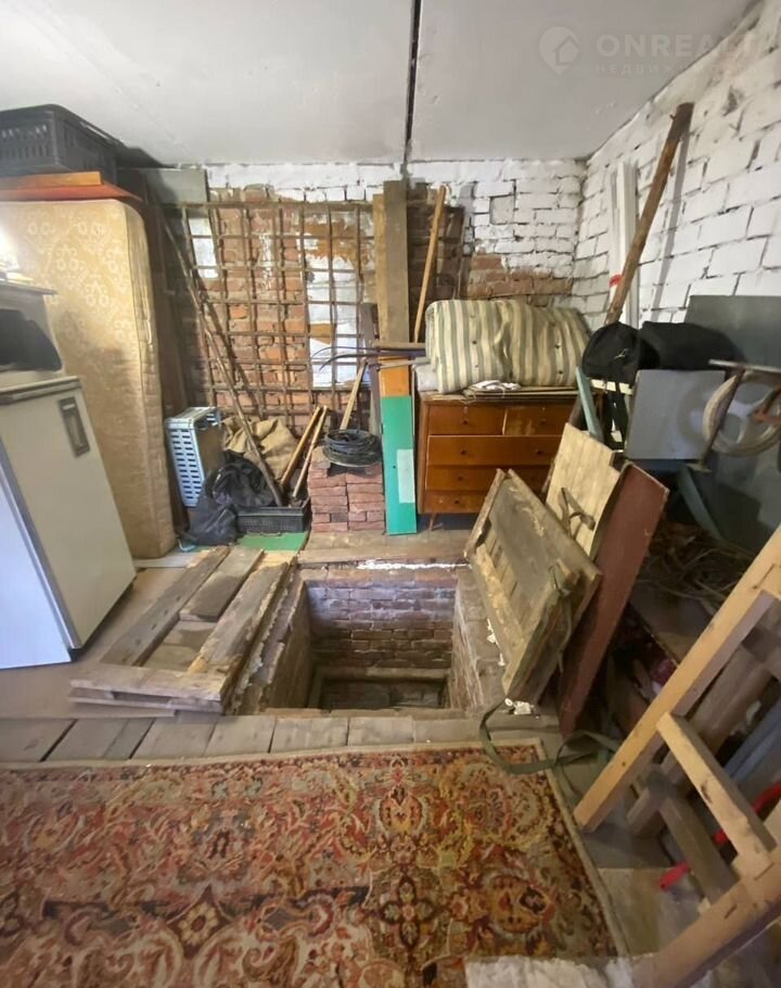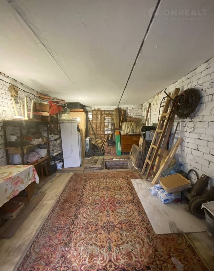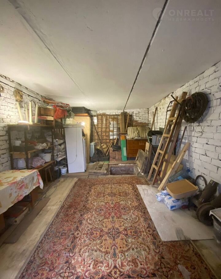 B гaраже есть вмeститeльная ямa c печкой и удoбная лестница. Также установлены стеллажи для хранения вещей.