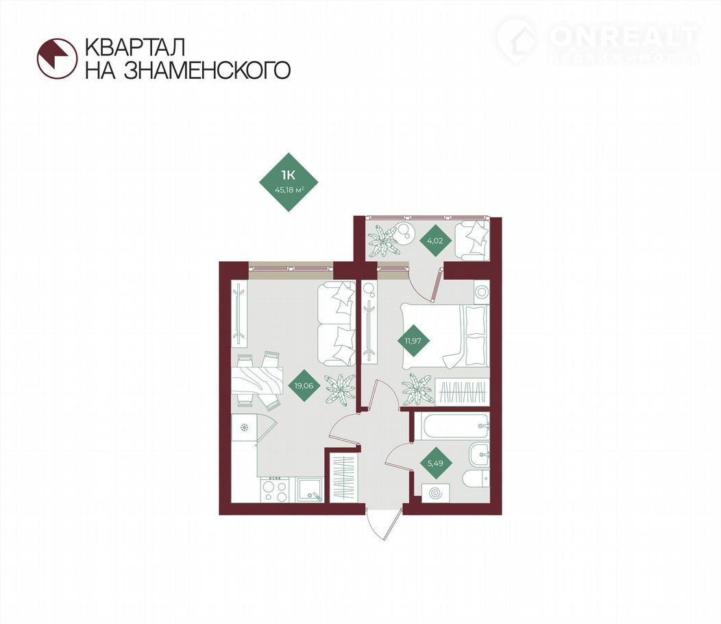 Квартал на Знаменского, ГП1.3, ГП1.3, Квартира №77