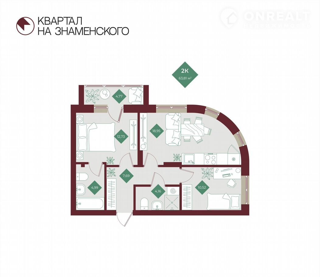 Квартал на Знаменского, ГП1.3, ГП1.3, Квартира №107