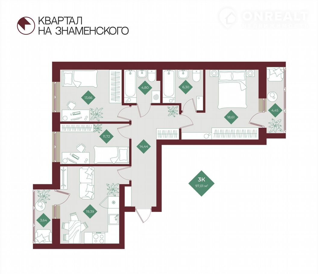 Общая площадь 97 м2