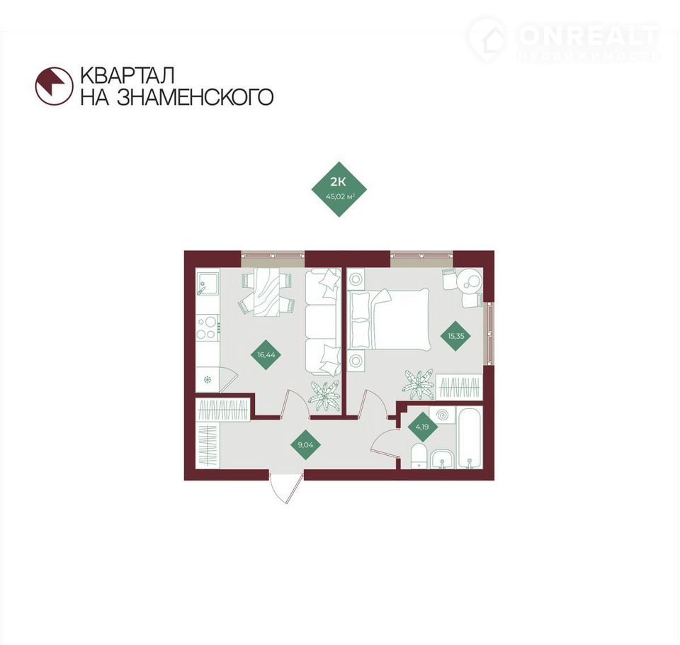 Общая площадь 45 м2
