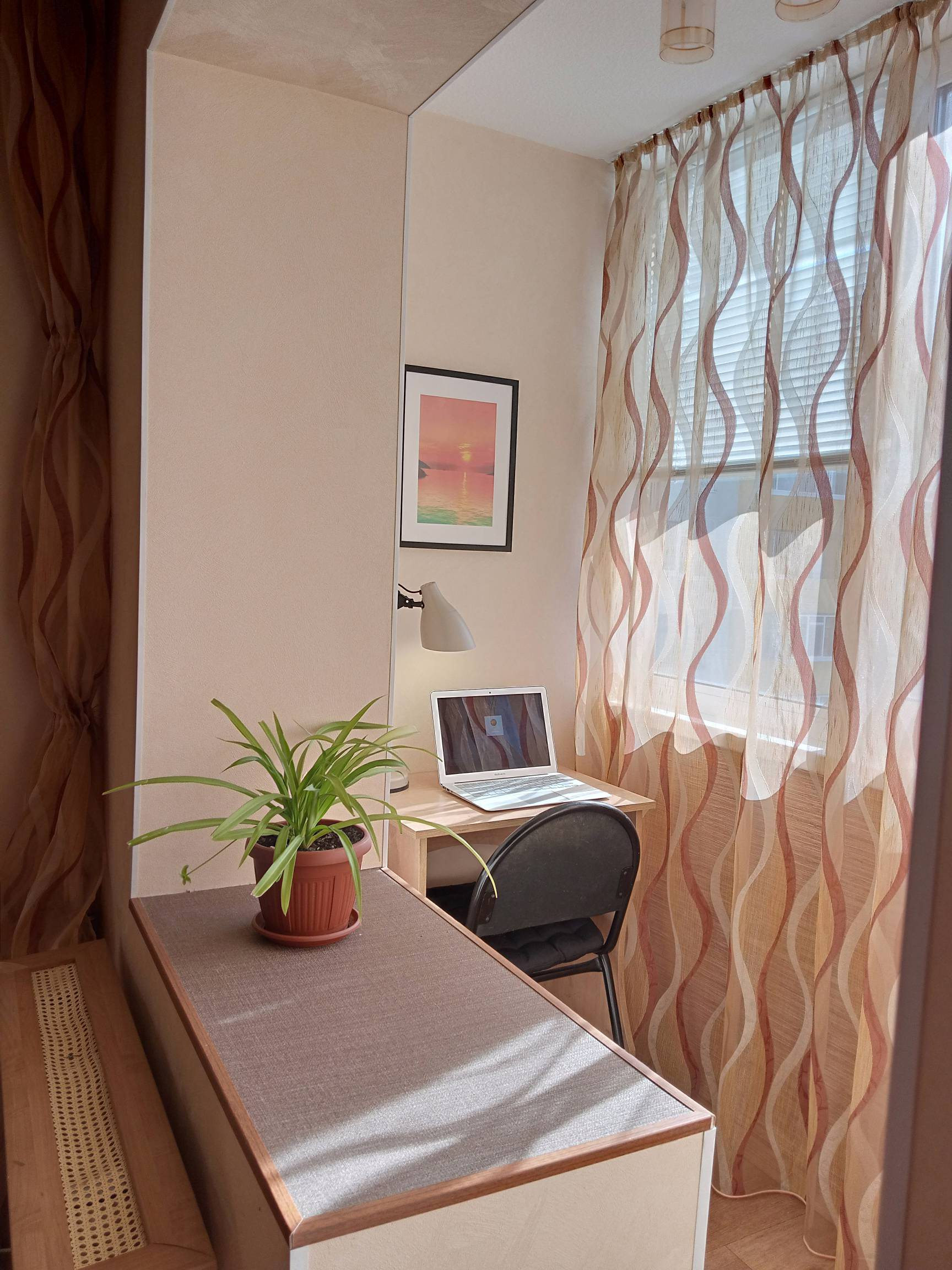 * на утеплённый лоджии обустроено рабочее место,