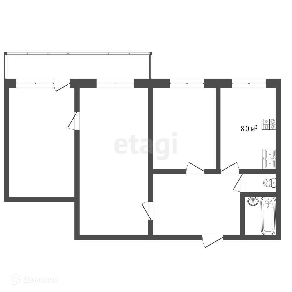 Общая площадь 52.8 м2