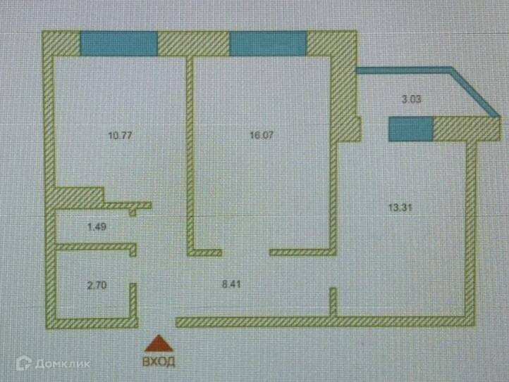 Общая площадь 52.9 м2