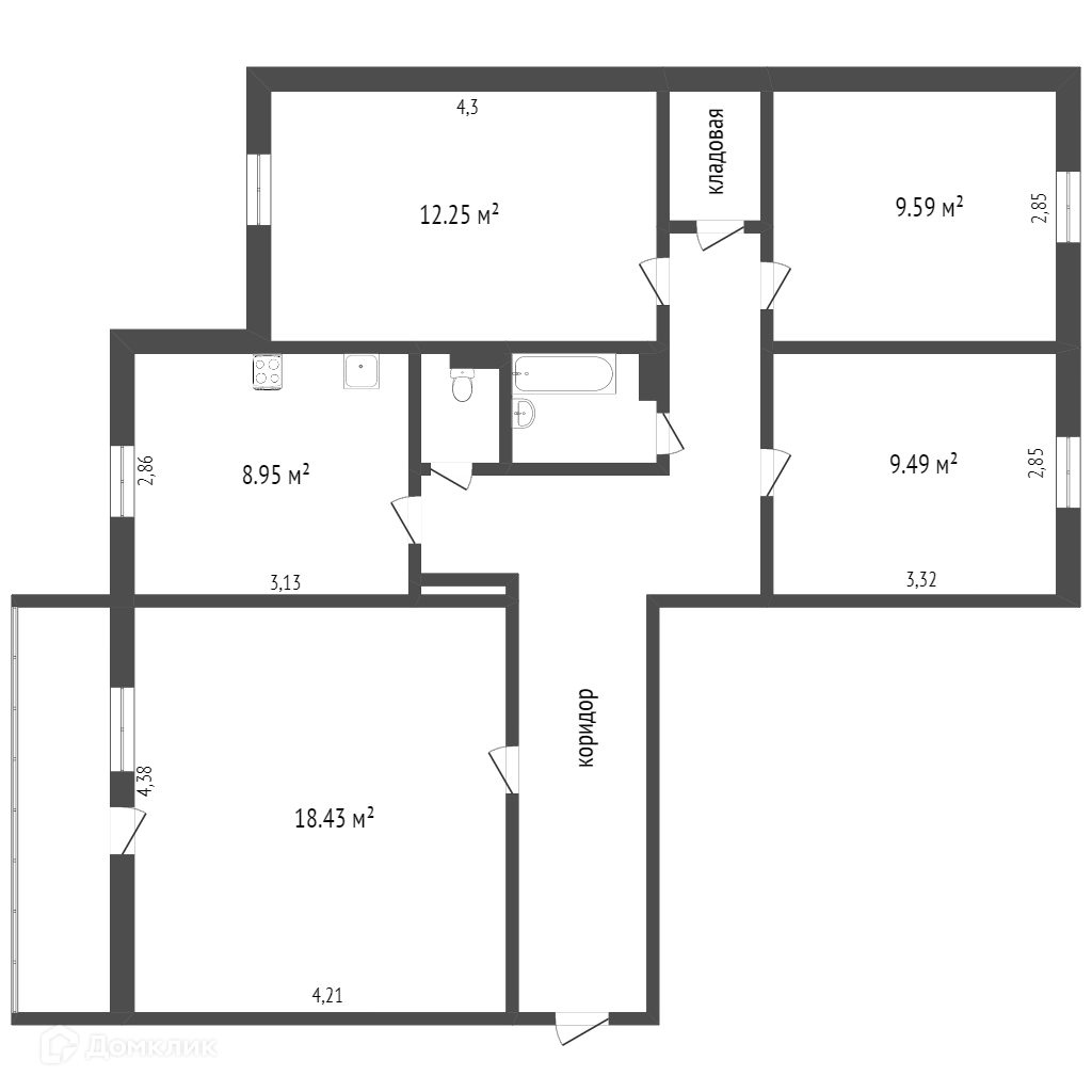 Общая площадь 79.8 м2