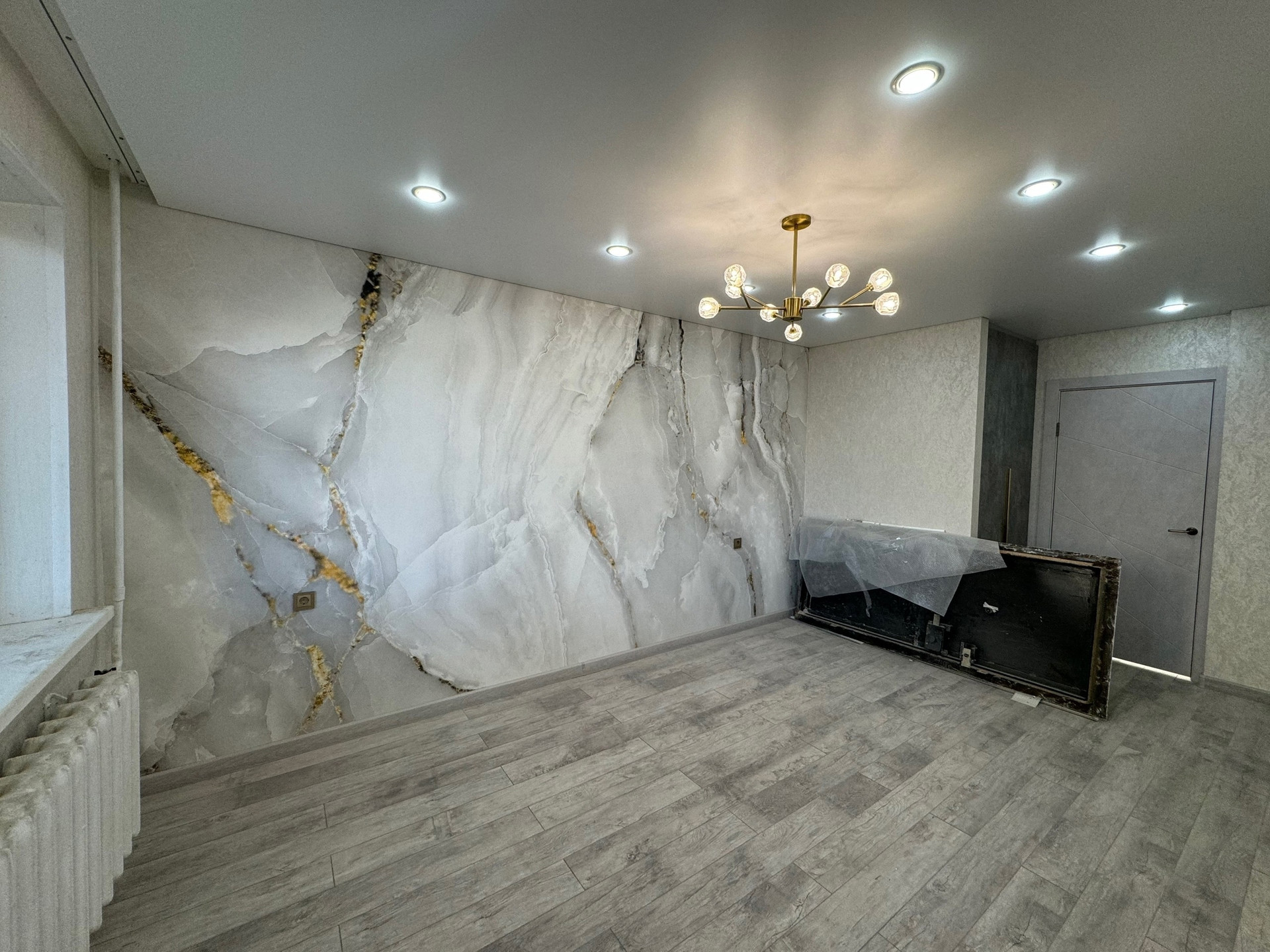 В квартире выполнен качественный современный ремонт. После ремонта никто не жил. Есть вместительная гардеробная. Кухонный гарнитур новый остается при продаже и бытовая техника.