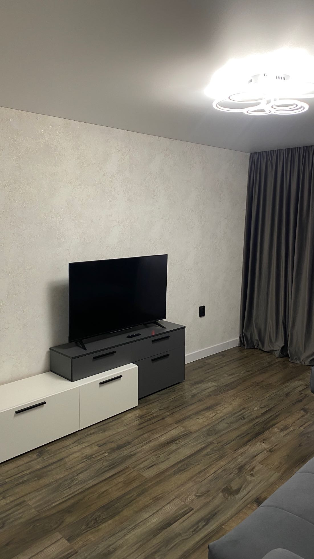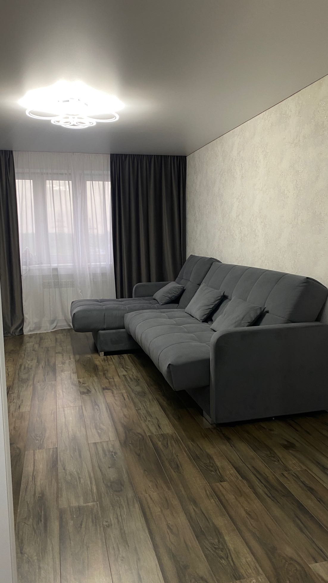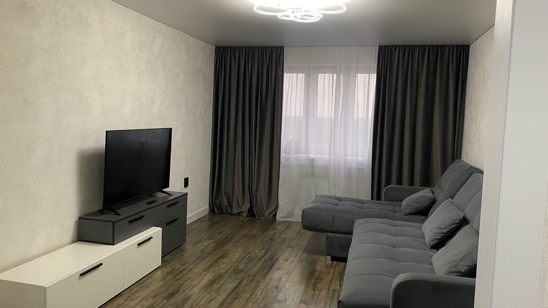 Квартира полностью меблированная, имеется абсолютно всё для комфортного проживания ! В квартире гостиная , спальня с гардеробной , кухня с бытовой техникой , туалет и ванна раздельно , имеется водонагреватель, стиральная машина . Абсолютно вся новая мебель. Очень удобная планировка .