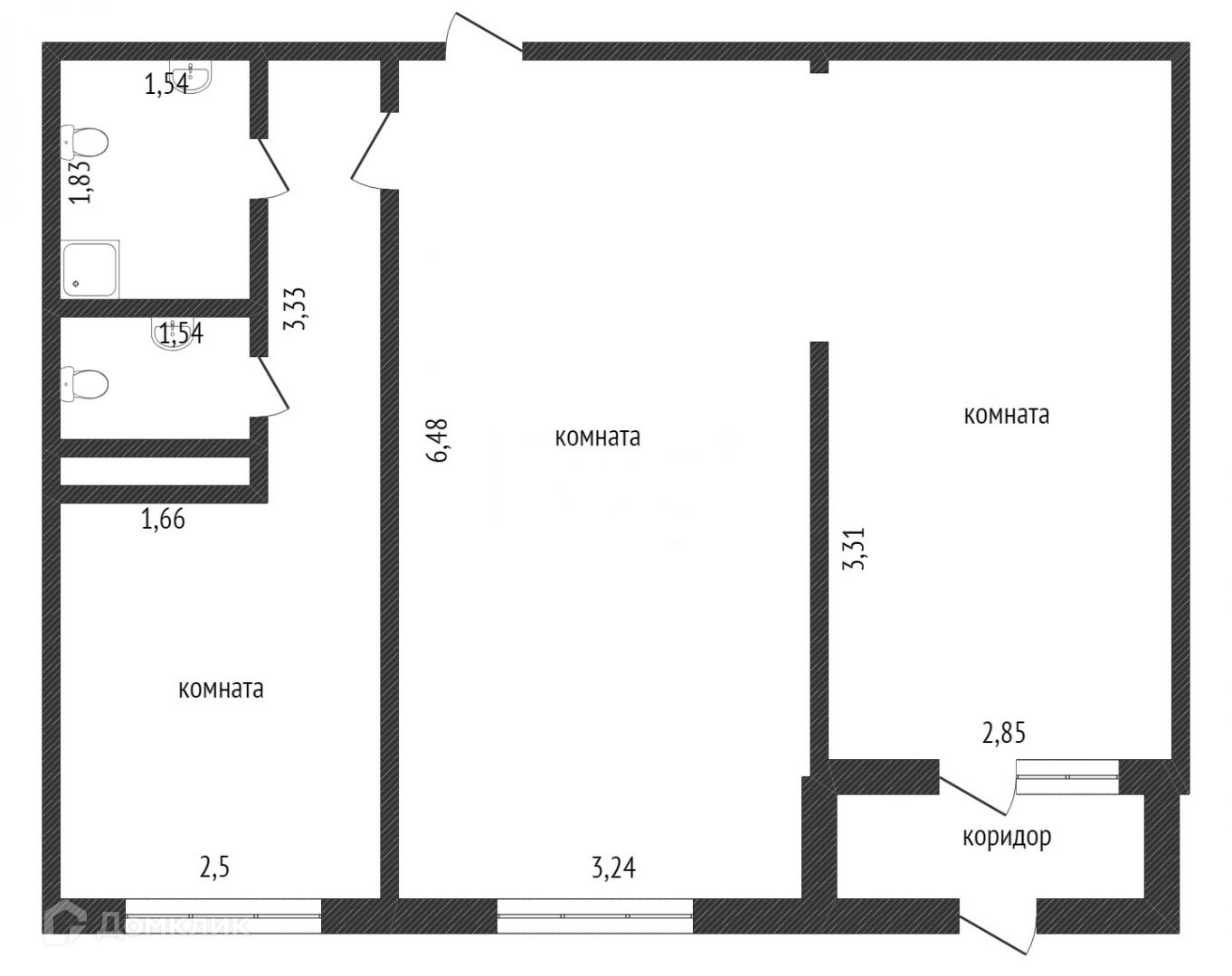 Общая площадь 51.7 м2
