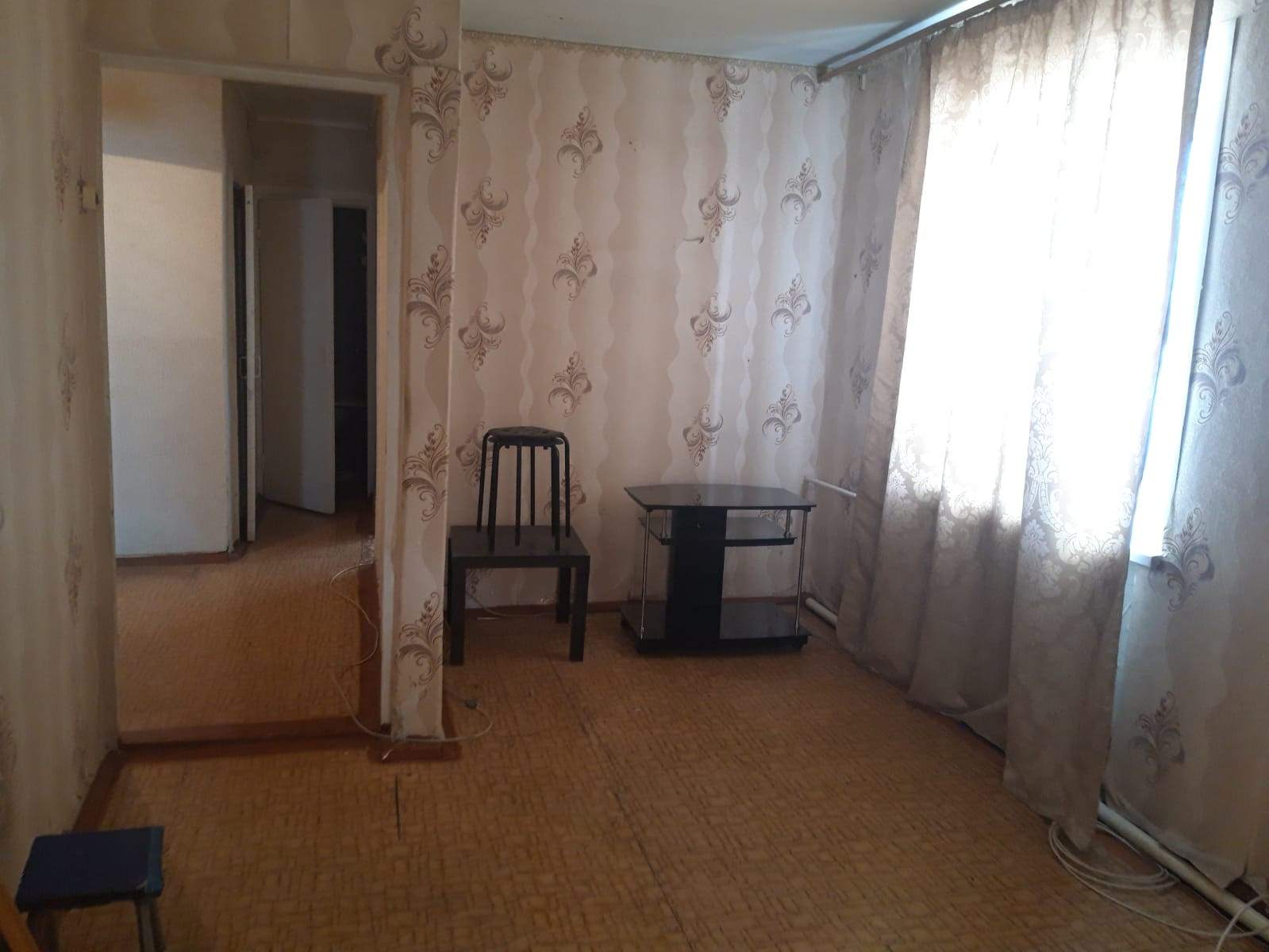 В квартире пластиковые окна, на полу линолеум.