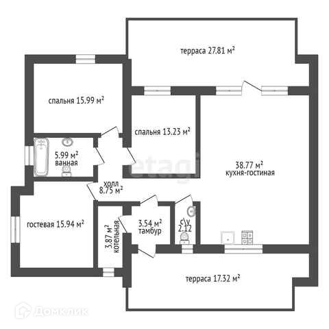 Площадь террасы: 27,81м2