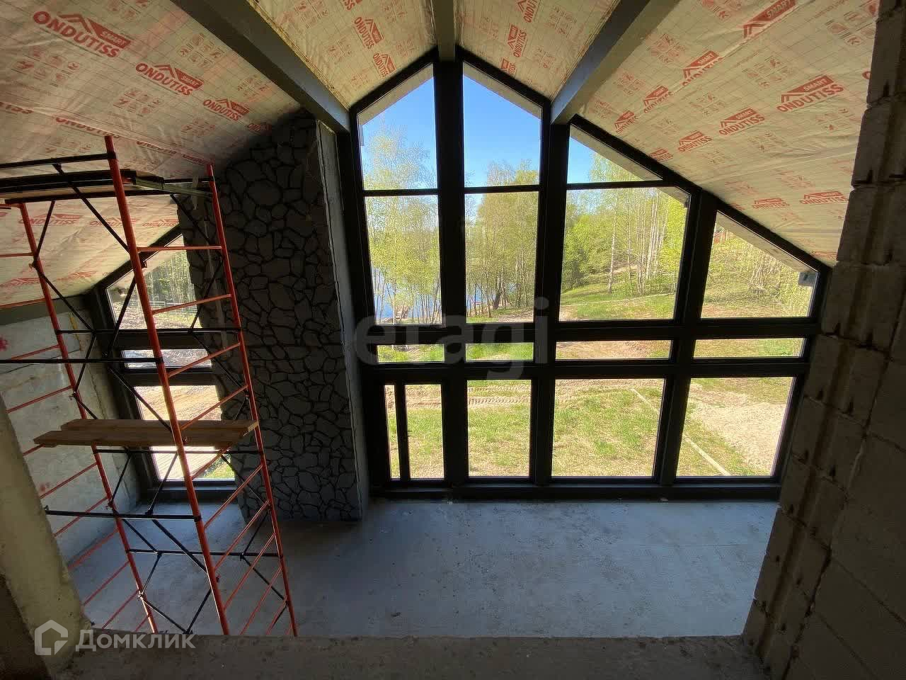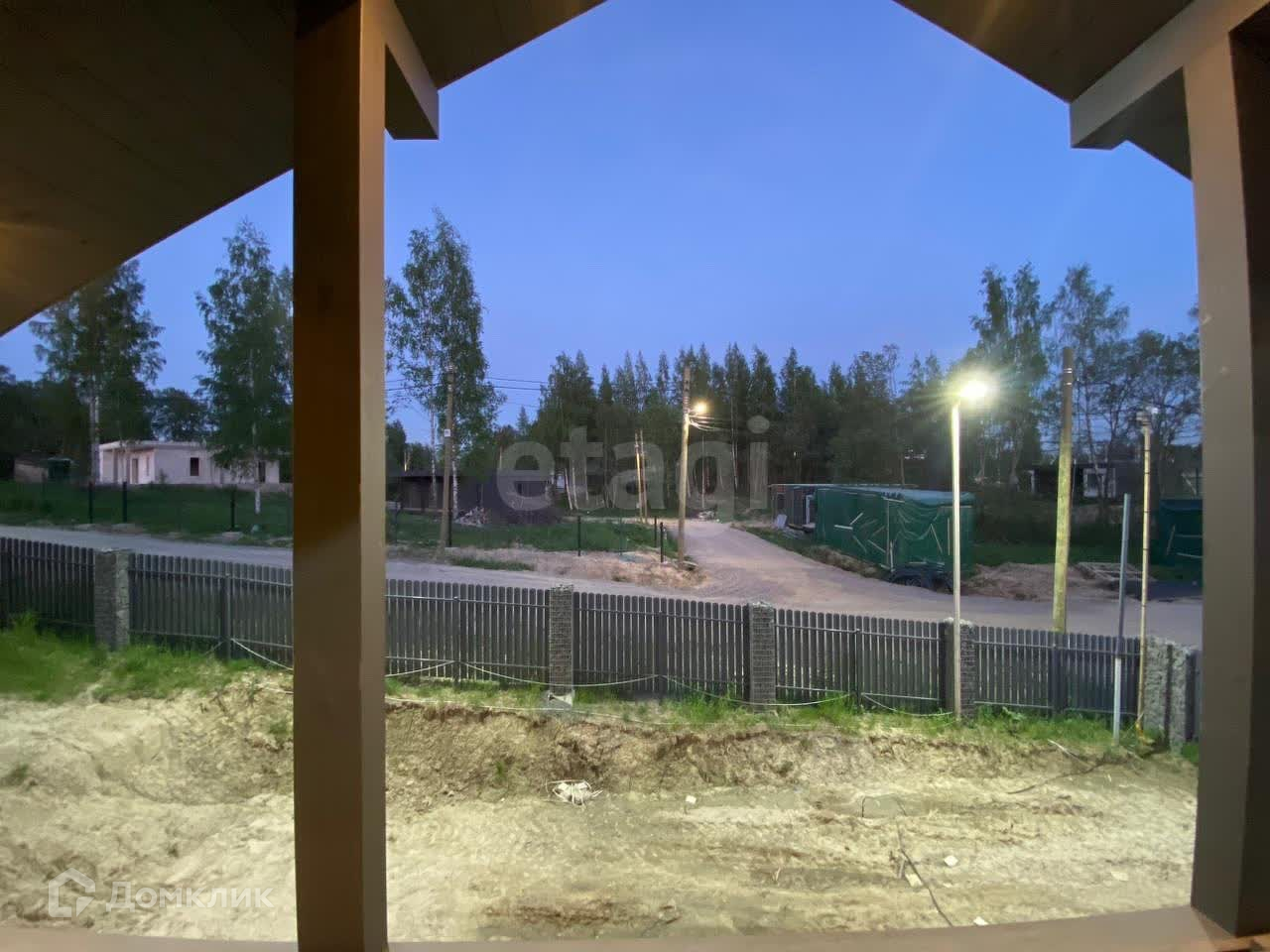 Участок имеет красивую форму и находится в 100 метрах от берега озера и имеет собственный выход к озеру и к стоянке для катеров. Неподалеку находится детская площадка.