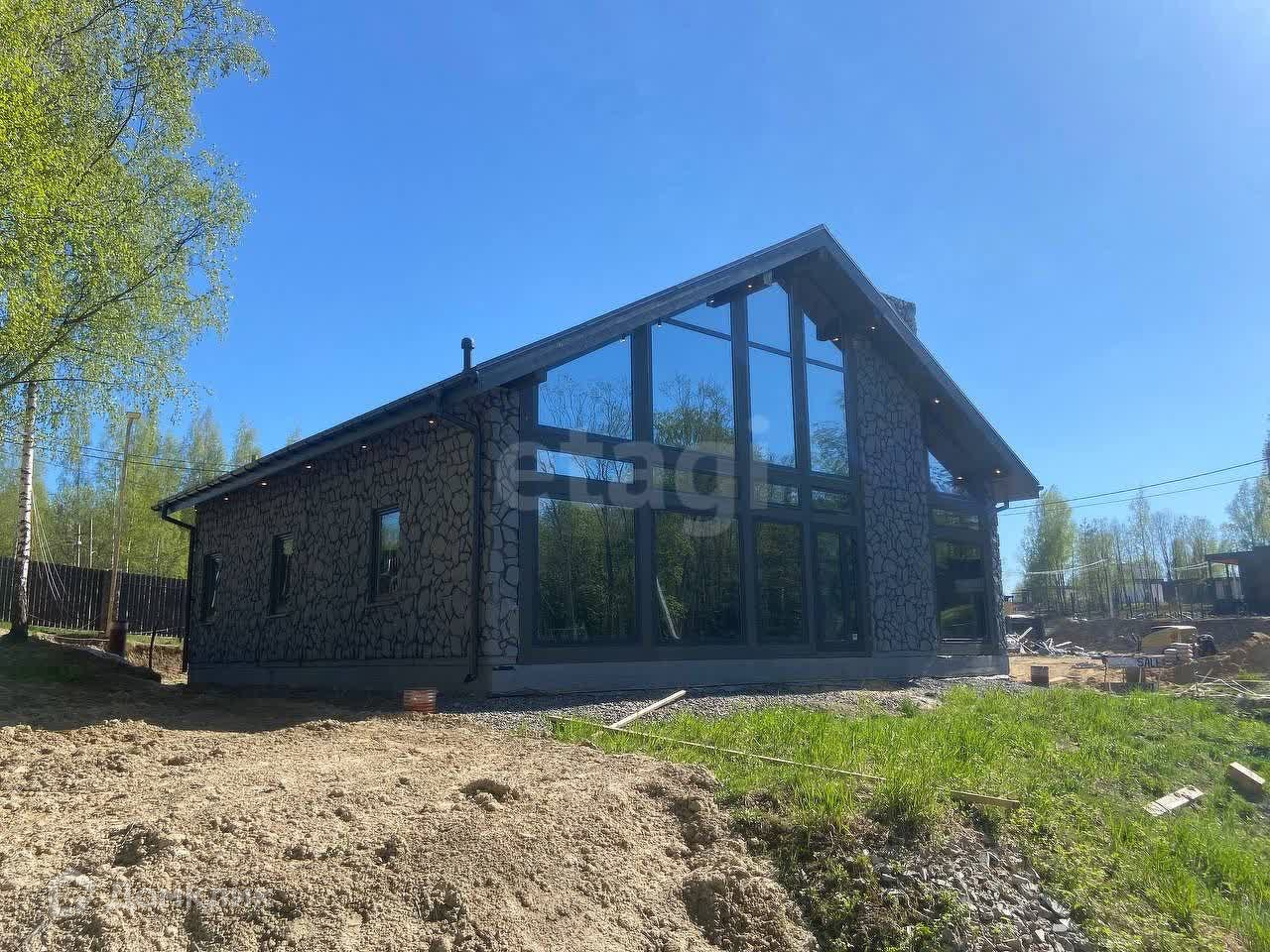 На участке выполнены следующие работы: газон с канадской многолетней травой, забор из двухметрового евроштакетника и габионов, откатные ворота с итальянским электромеханизмом "came", заезд и парковка для 3-4 автомобилей, электричество 15 кВт с бронированным кабелем под землей, газовое оборудование, дренажная система с колодцем, скважина на 200 метров для питьевой воды, автономная канализационная станция на 12 м³, освещение участка и подъезда со стороны дороги.