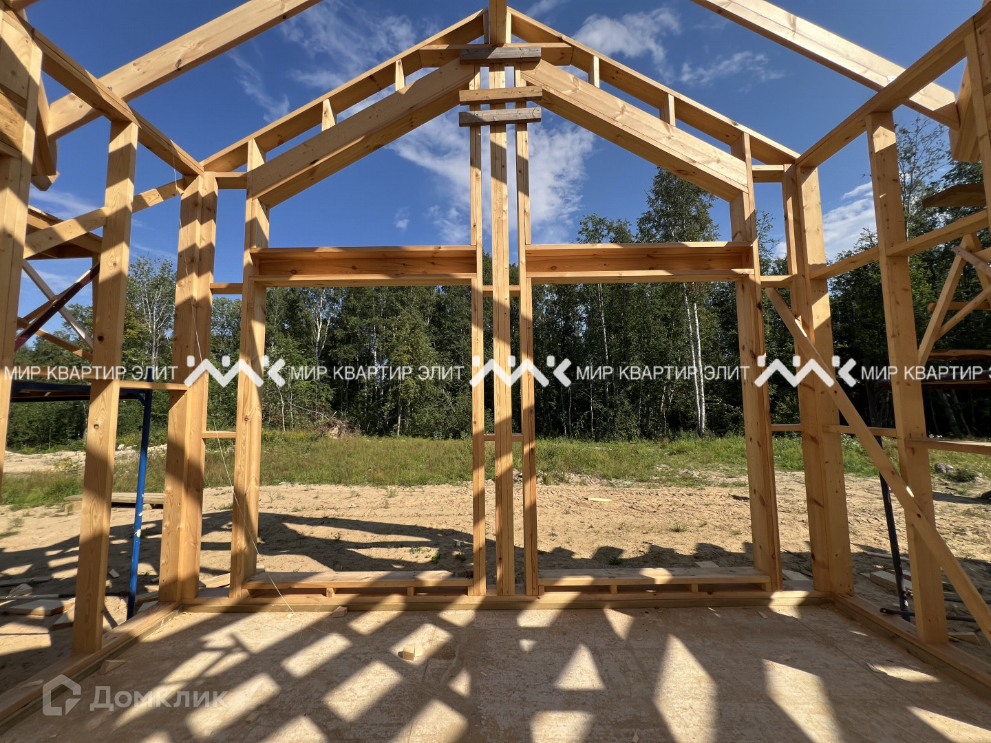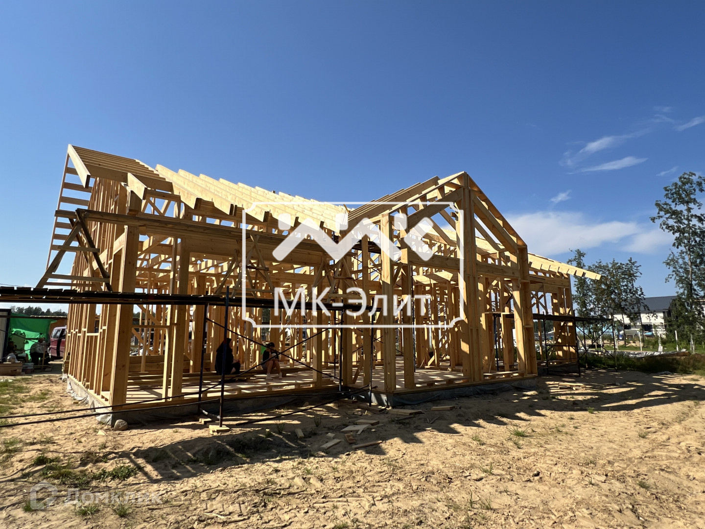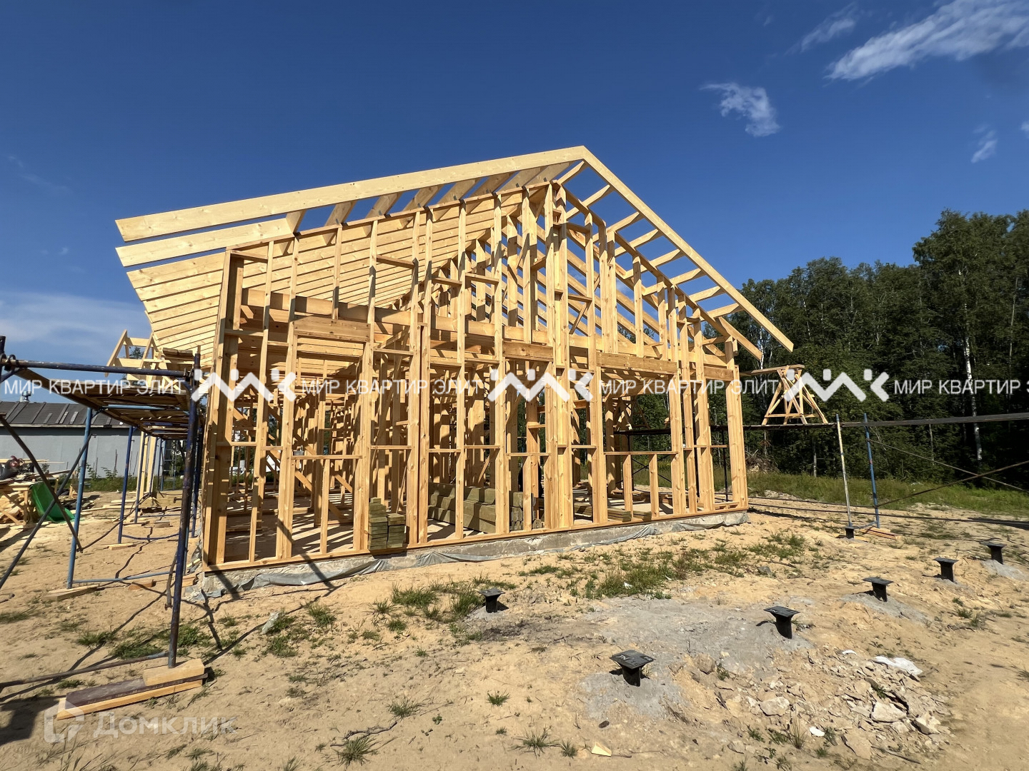 Дом находится на финальной части стройки, в данный момент почти готов. На фото начальный этап строительства.