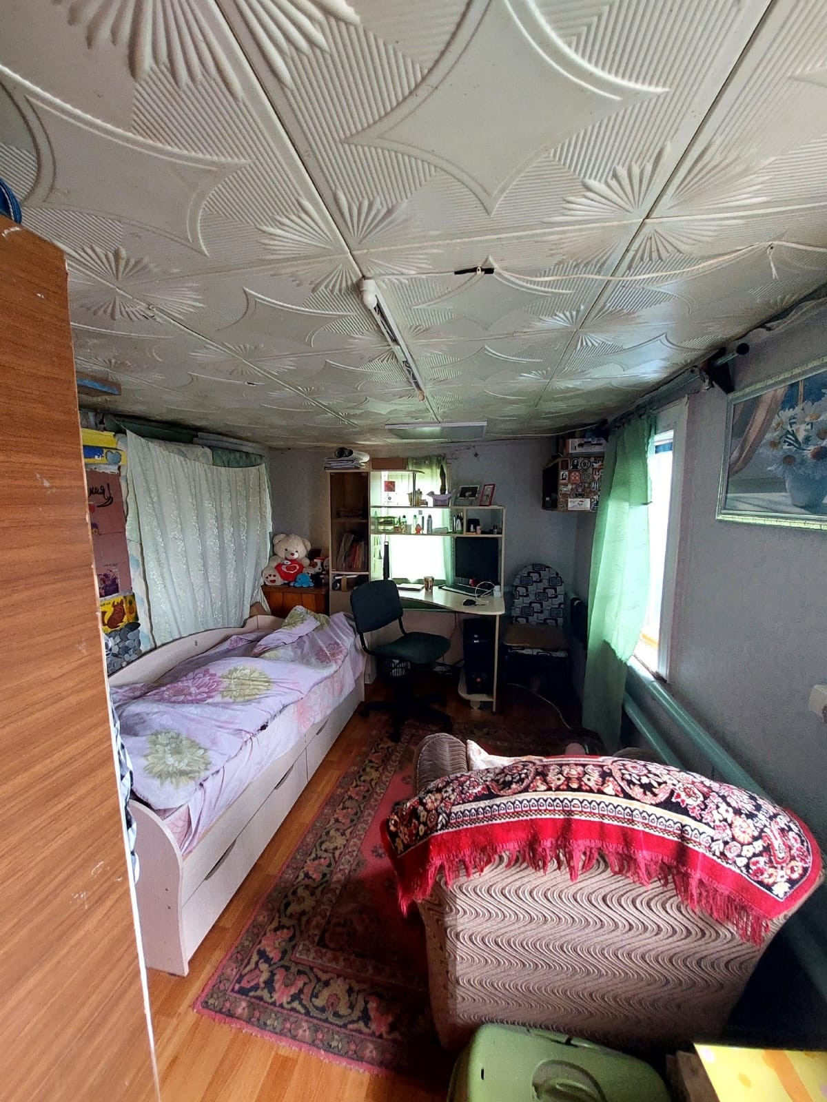 дом деревянный, в доме ванна и туалет совмещены, АГВ, холодная и горячая вода, баня старая, требует ремонта.
