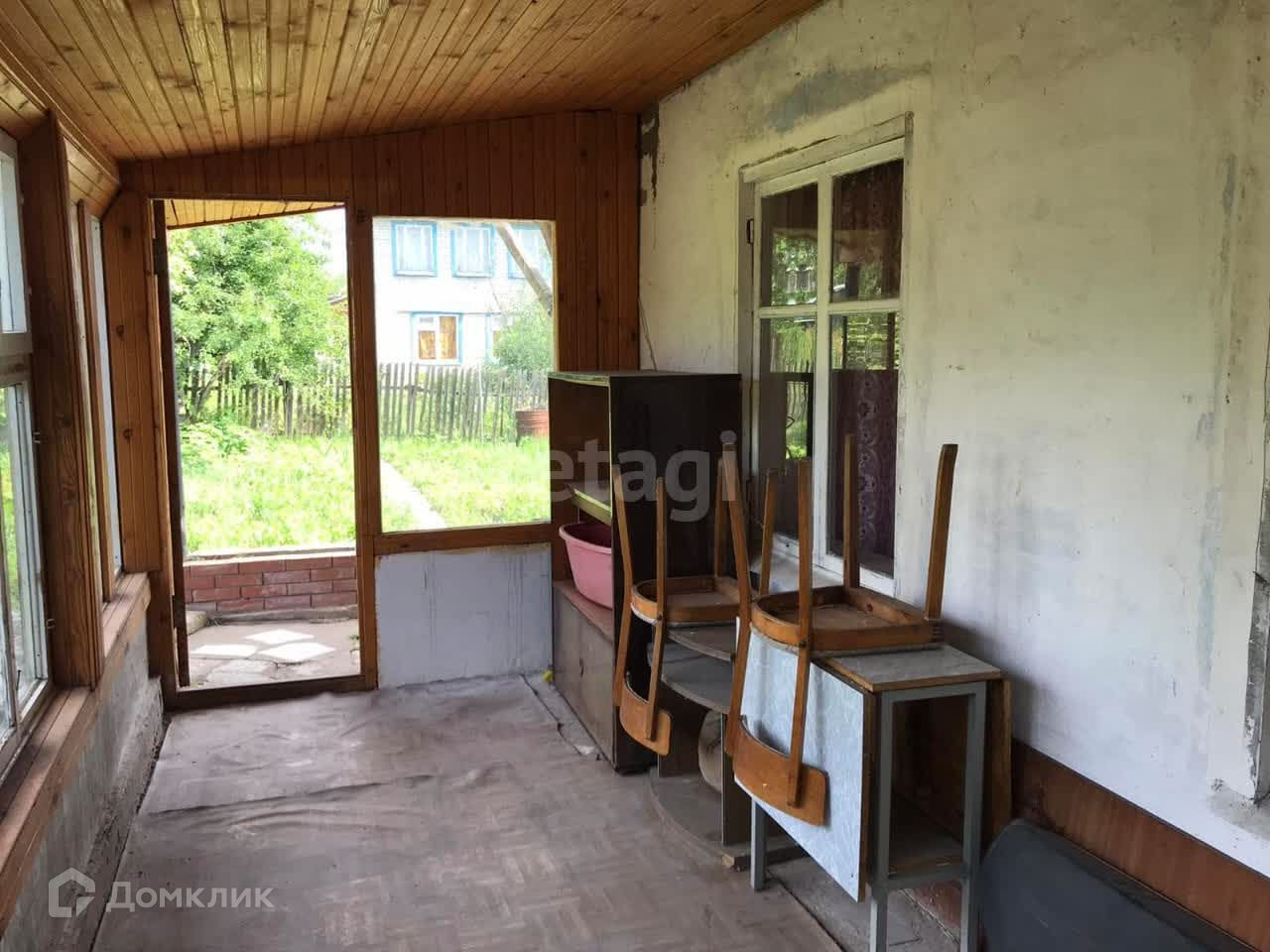 Дом двухэтажный, сухой. Проведено электричество. Крыша крыта железом. На первом этаже кухня с водоотведением и жилая комната. На втором этаже жилая комната. К дому пристроена большая застекленная веранда. Требуется косметический ремонт.
