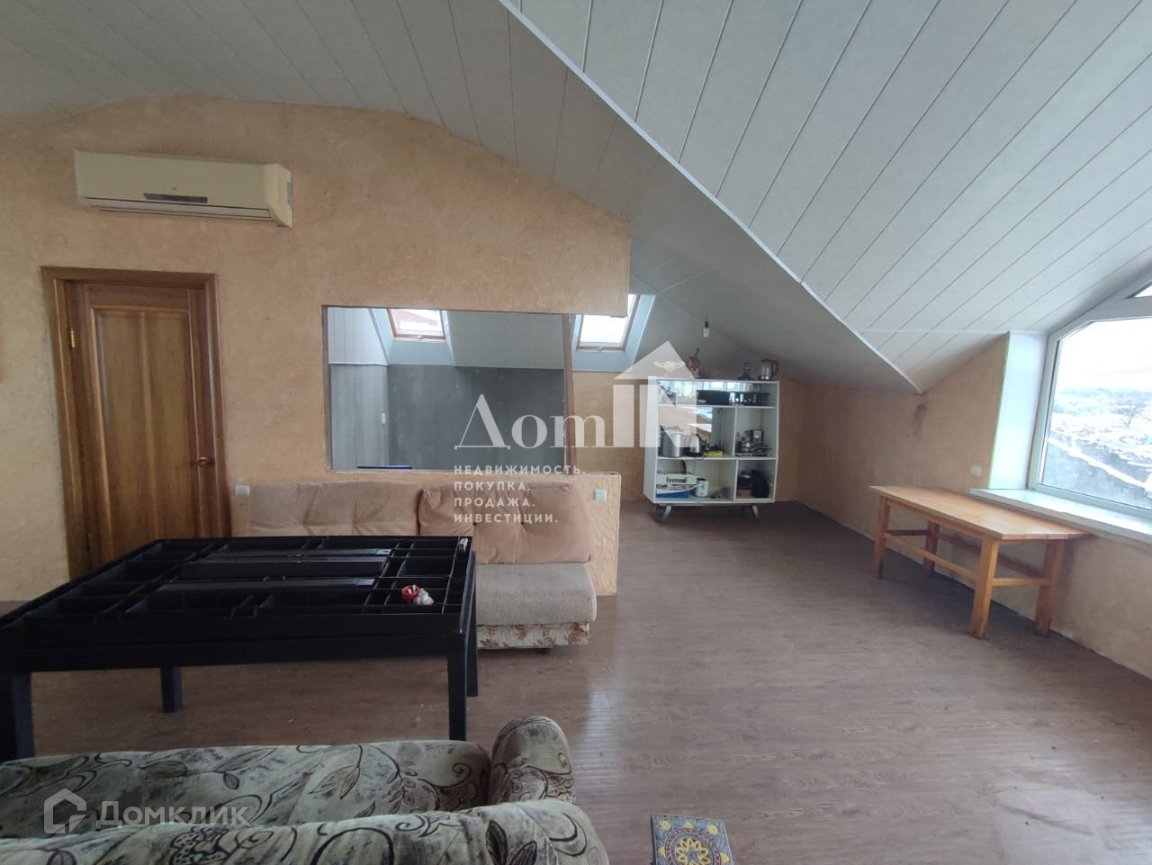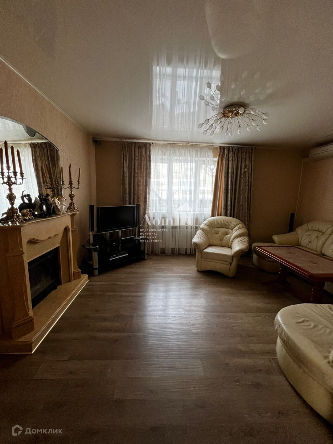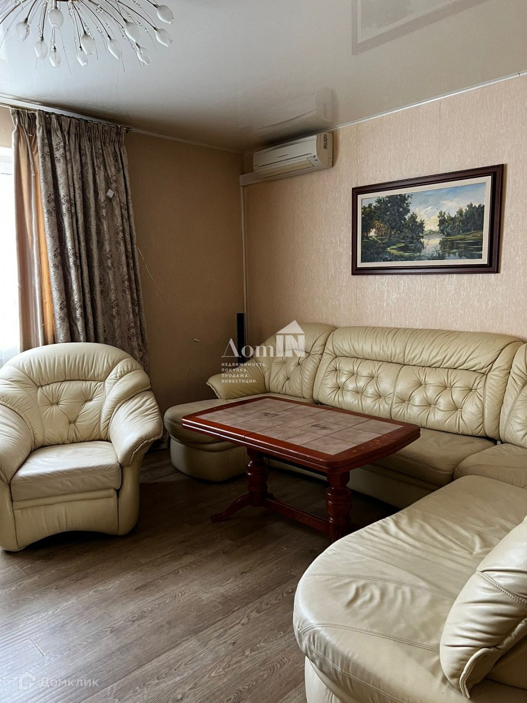 В доме натяжные потолки, полы ламинат, пять кондиционеров.