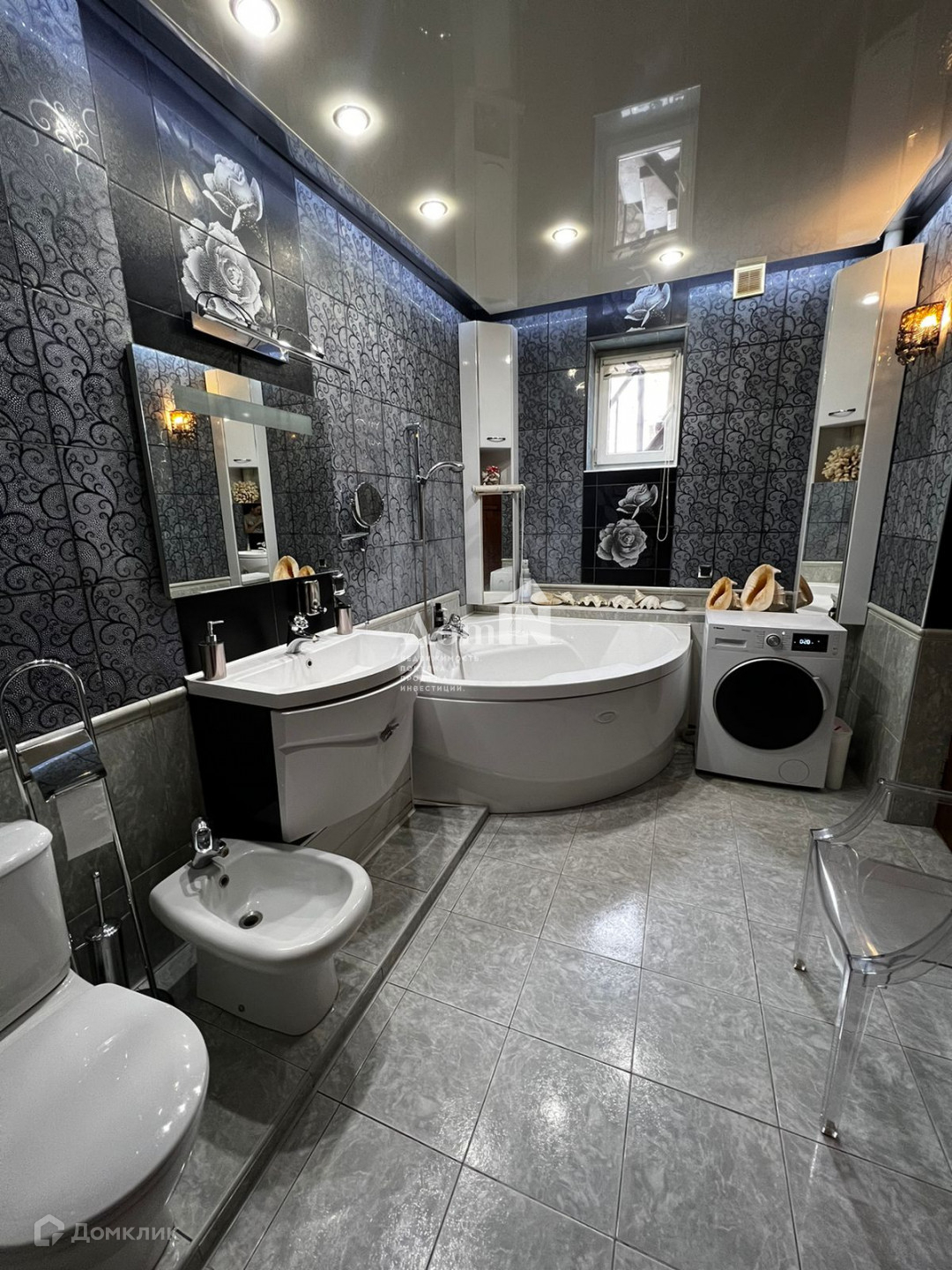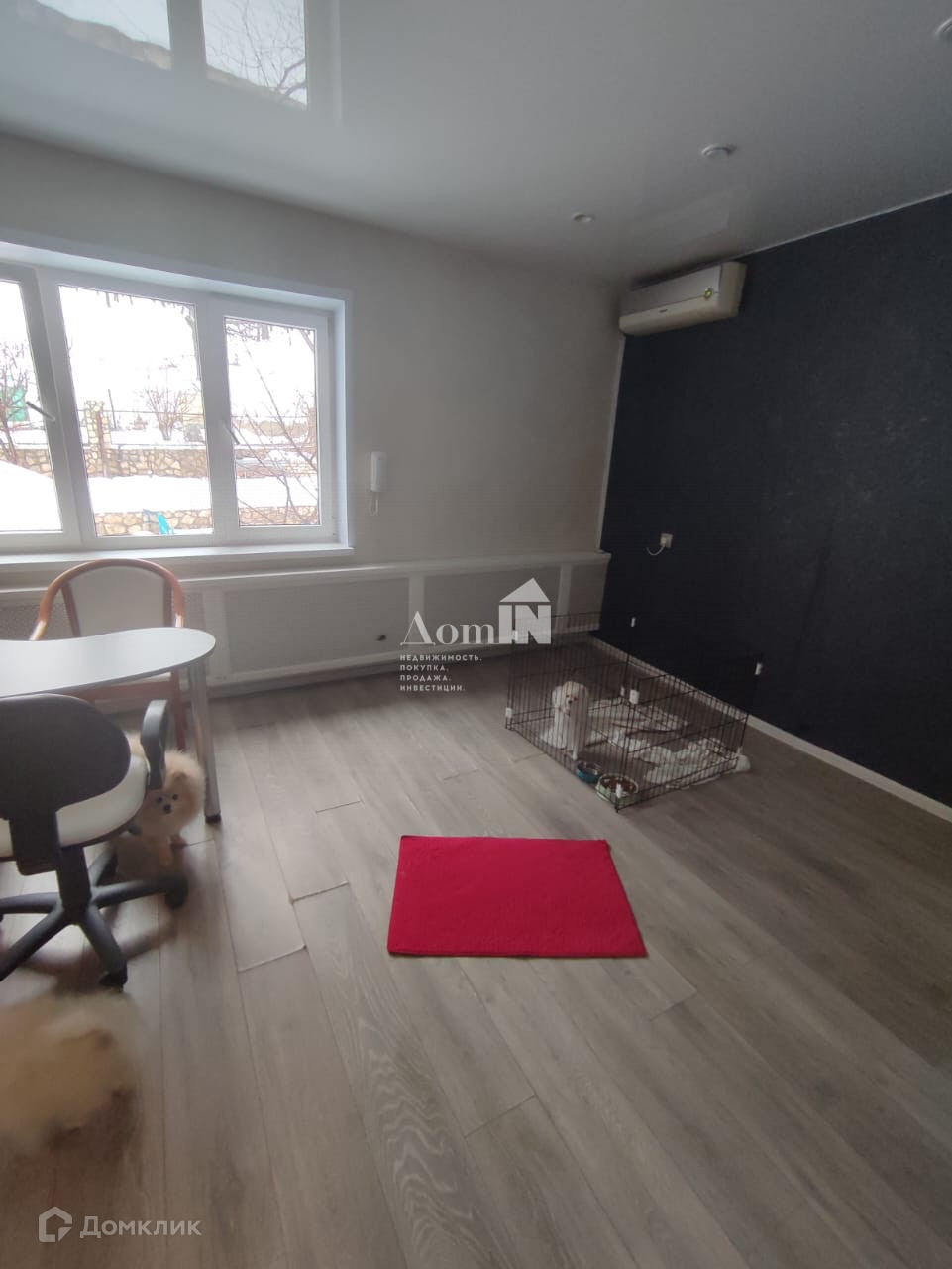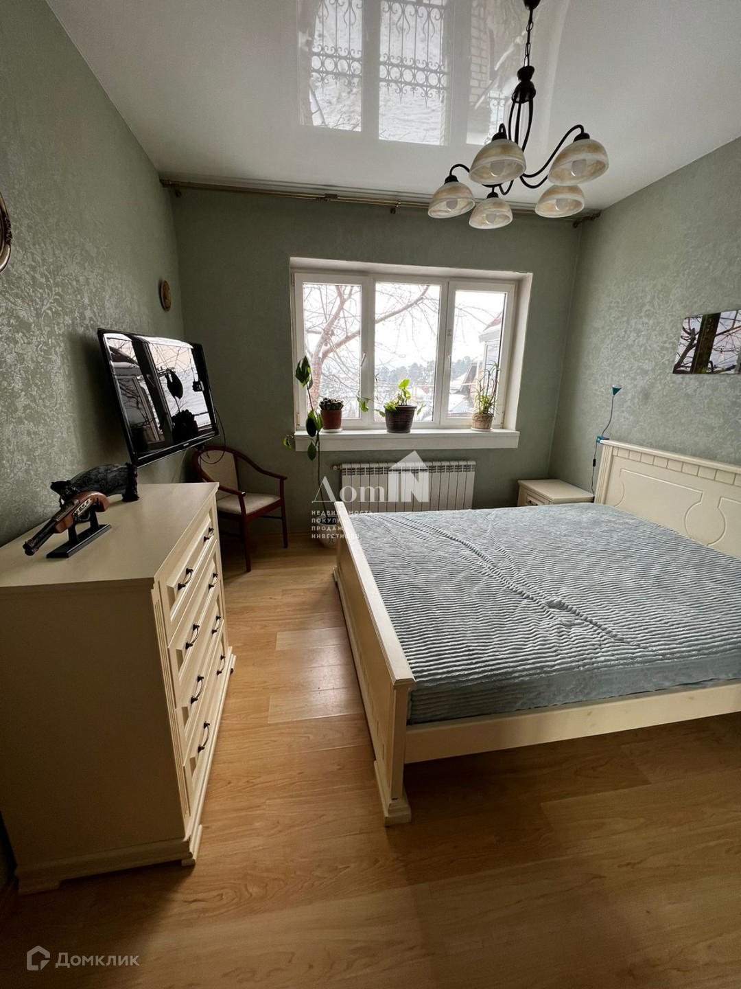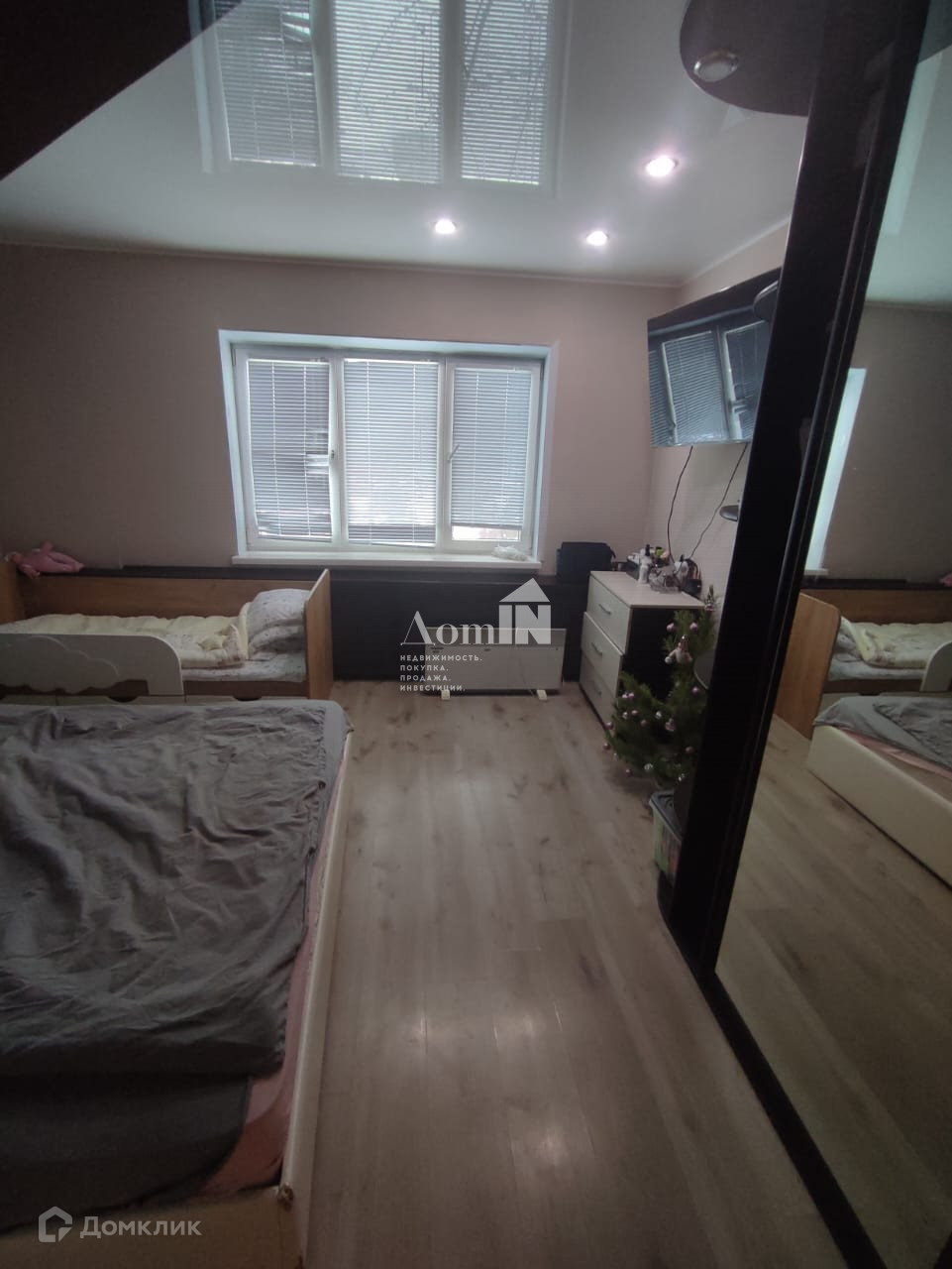 В доме натяжные потолки, полы ламинат, пять кондиционеров.