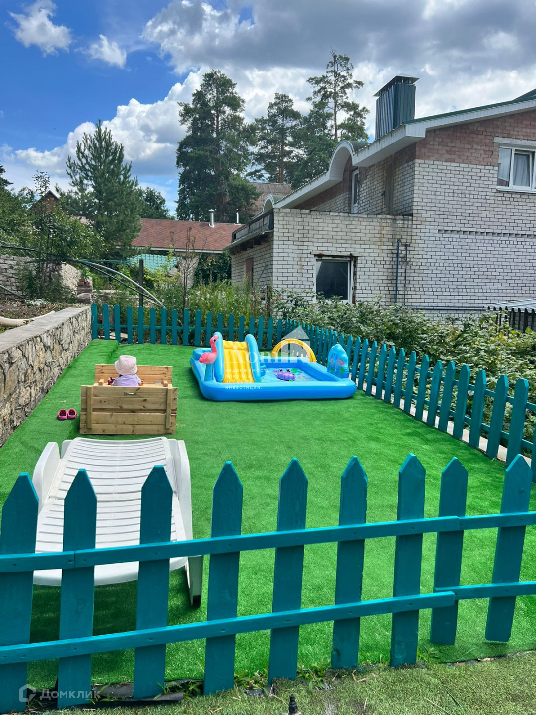 На участке имеется бассейн на 100 кубов, со стационарной системой фильтрации, пруд, новая детская площадка с искусственным газоном. Так же на участке насаждения плодовых деревьев ( абрикосы, черешня, яблони, слива).