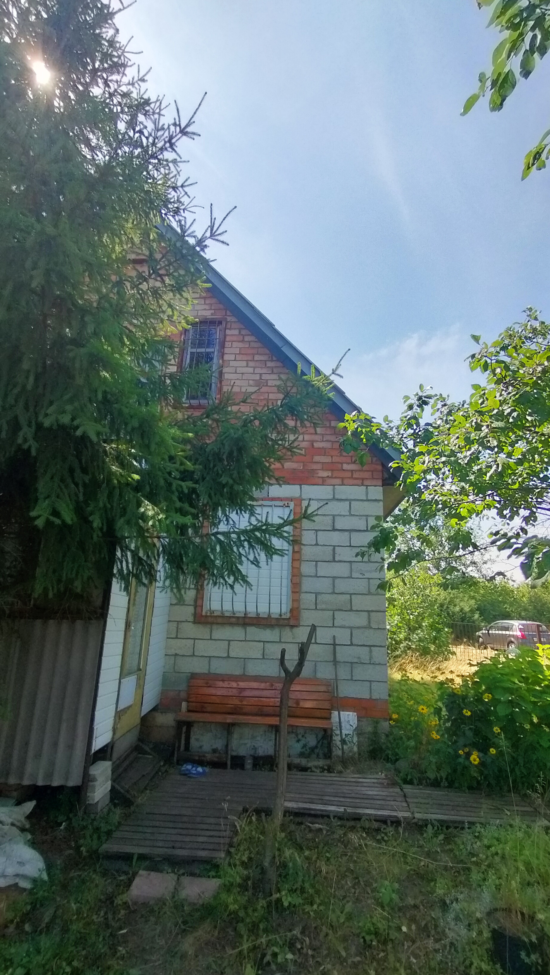 На участке 2х этажный дом (блок+кирпич) с печным отопление. На 1 этаже две большие комнаты. вторым этажом не пользовались (без ремонта)