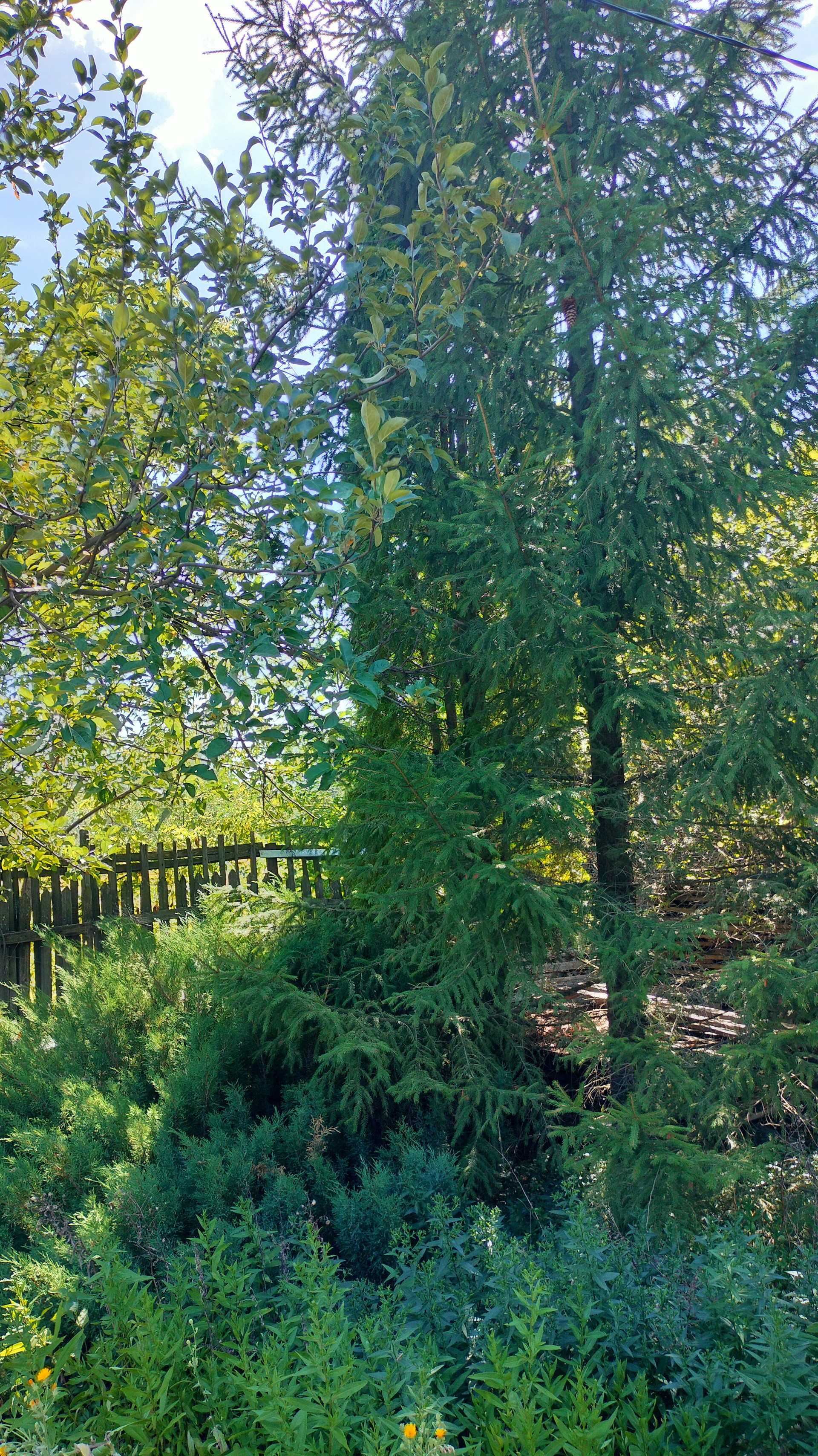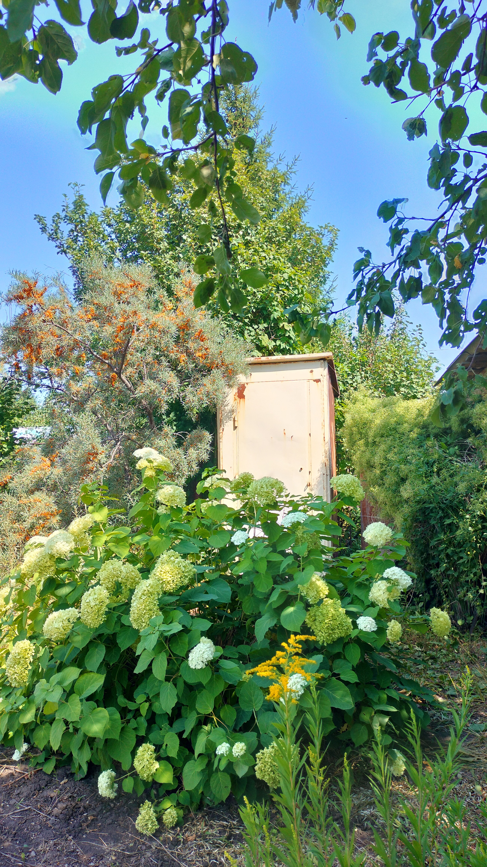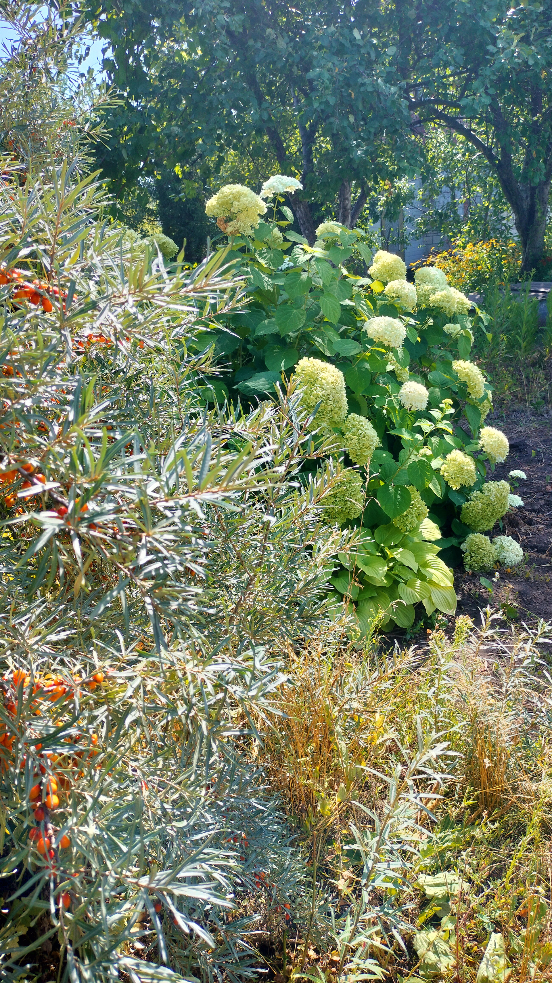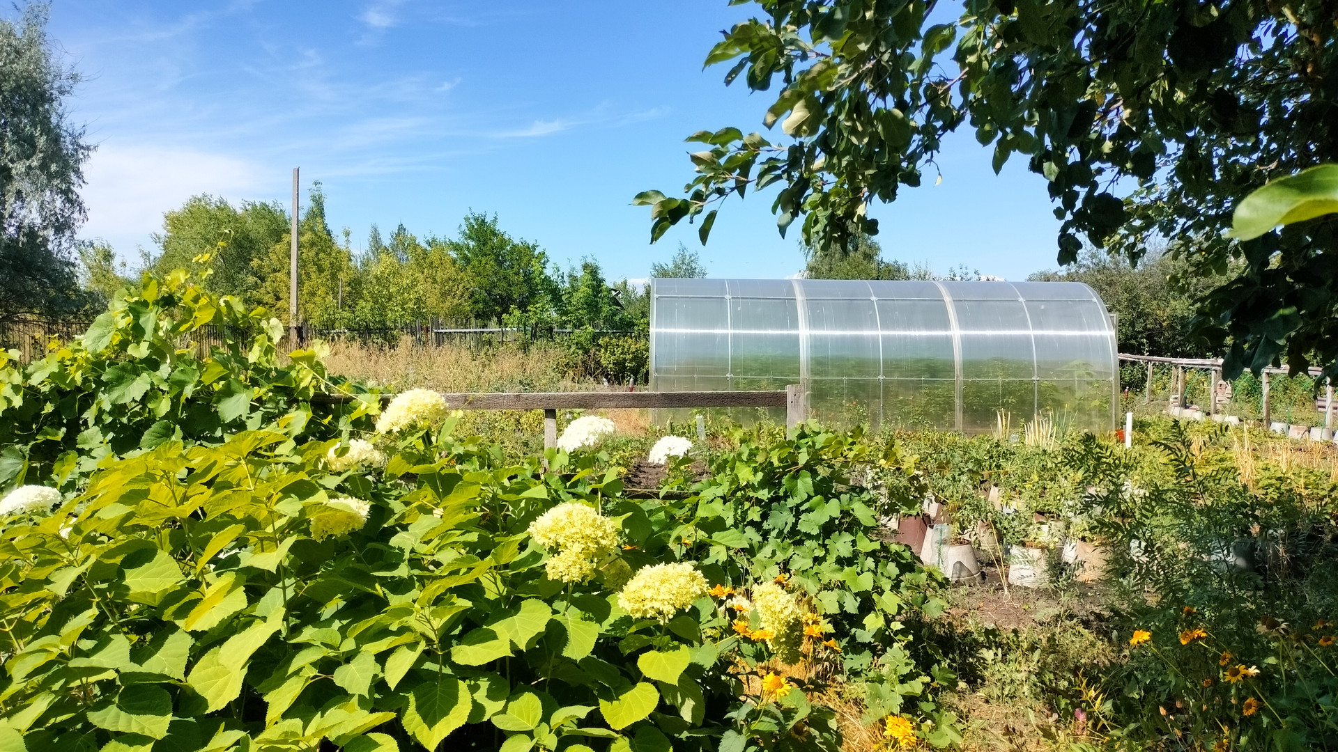 Много многолетних цветов и плодовых растений.