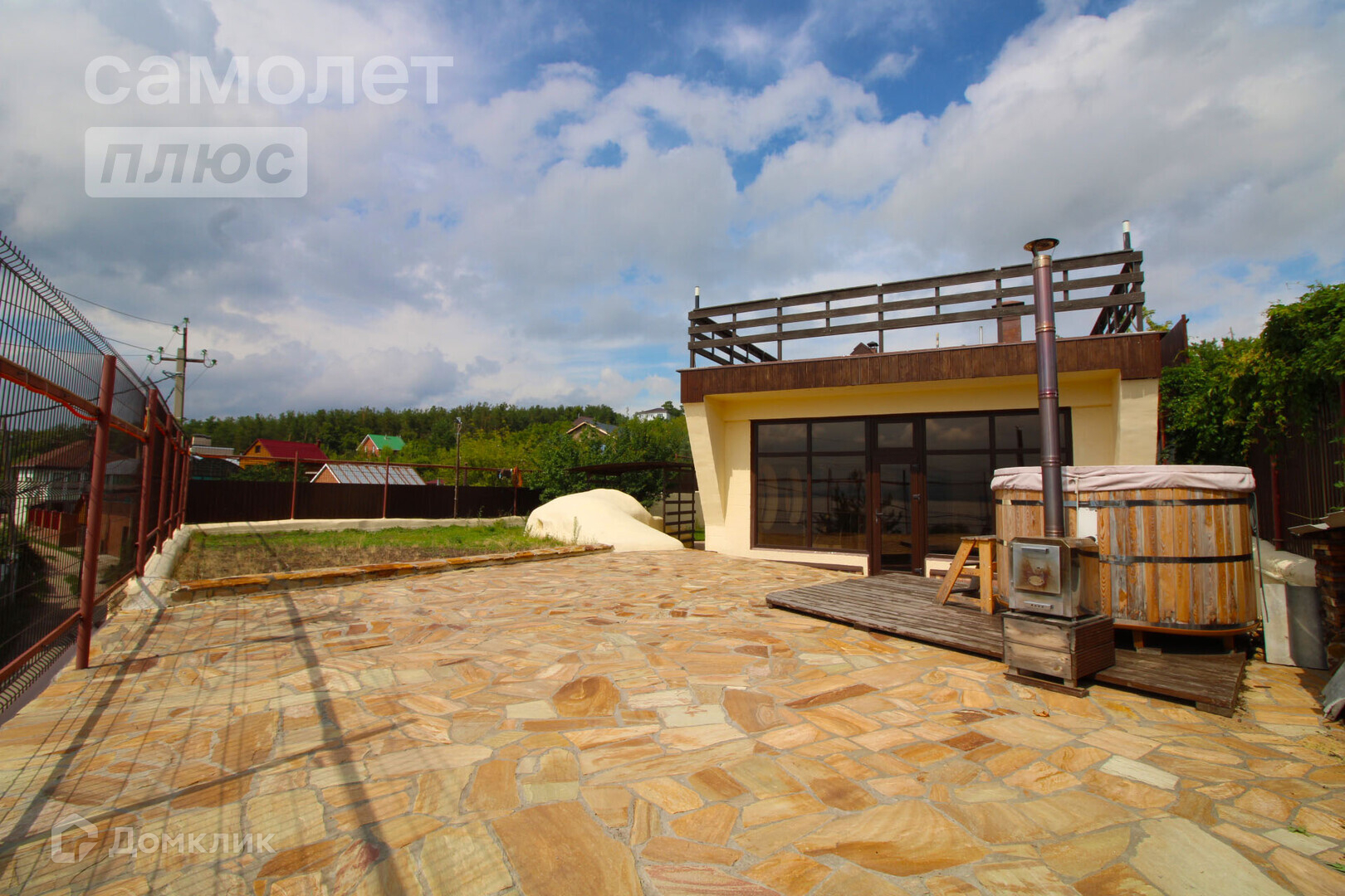 На территории располагается большой банный комплекс с зоной барбекю, камином и баней из Сибирского кедра.
