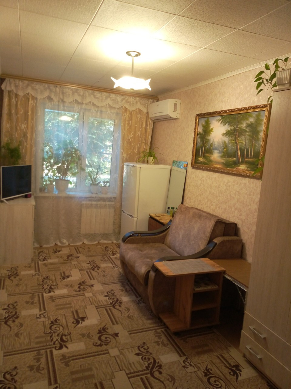 хорошая, спокойная квартира, в соседях пожилая женщина, кондиционер, пластиковые окна, в комнате есть кладовка