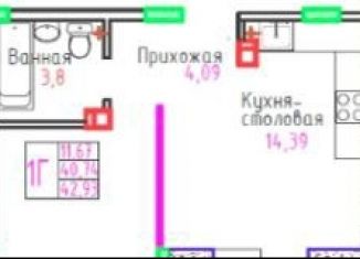 Однокомнатная квартира на продажу, 42.9 м2, улица Маршала Жукова, 60
