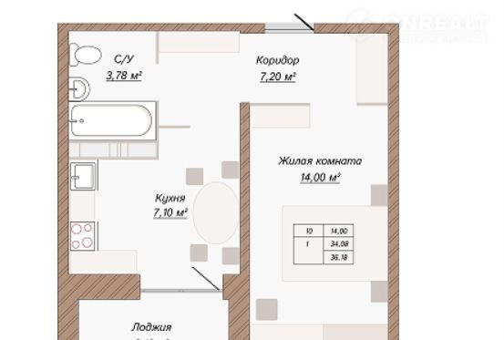 1-комнатная квартира, 36.2 м2, этаж 4 / 12, на продажу в Тольятти