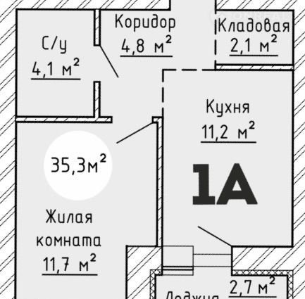 Общая площадь 35.3 м2