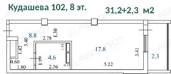 Продается 1-комн. квартира, Кудашева 102, 34/18/0 м2 за 2043000руб, Изолированная, Документы готовы, Пустая, Евро окна, СТУДИЯ,  Студия. Документы готовы, Ипотека 5,7%.