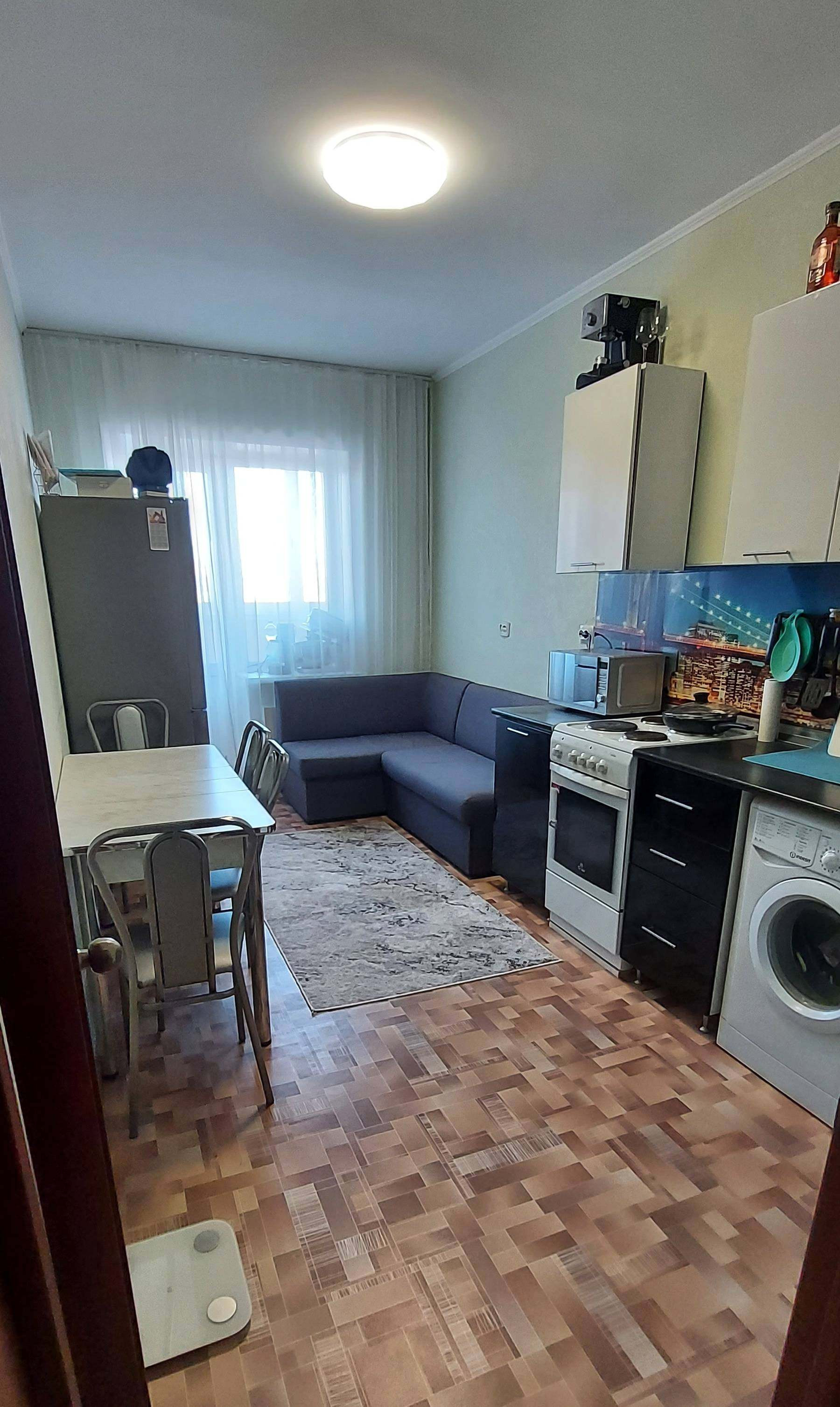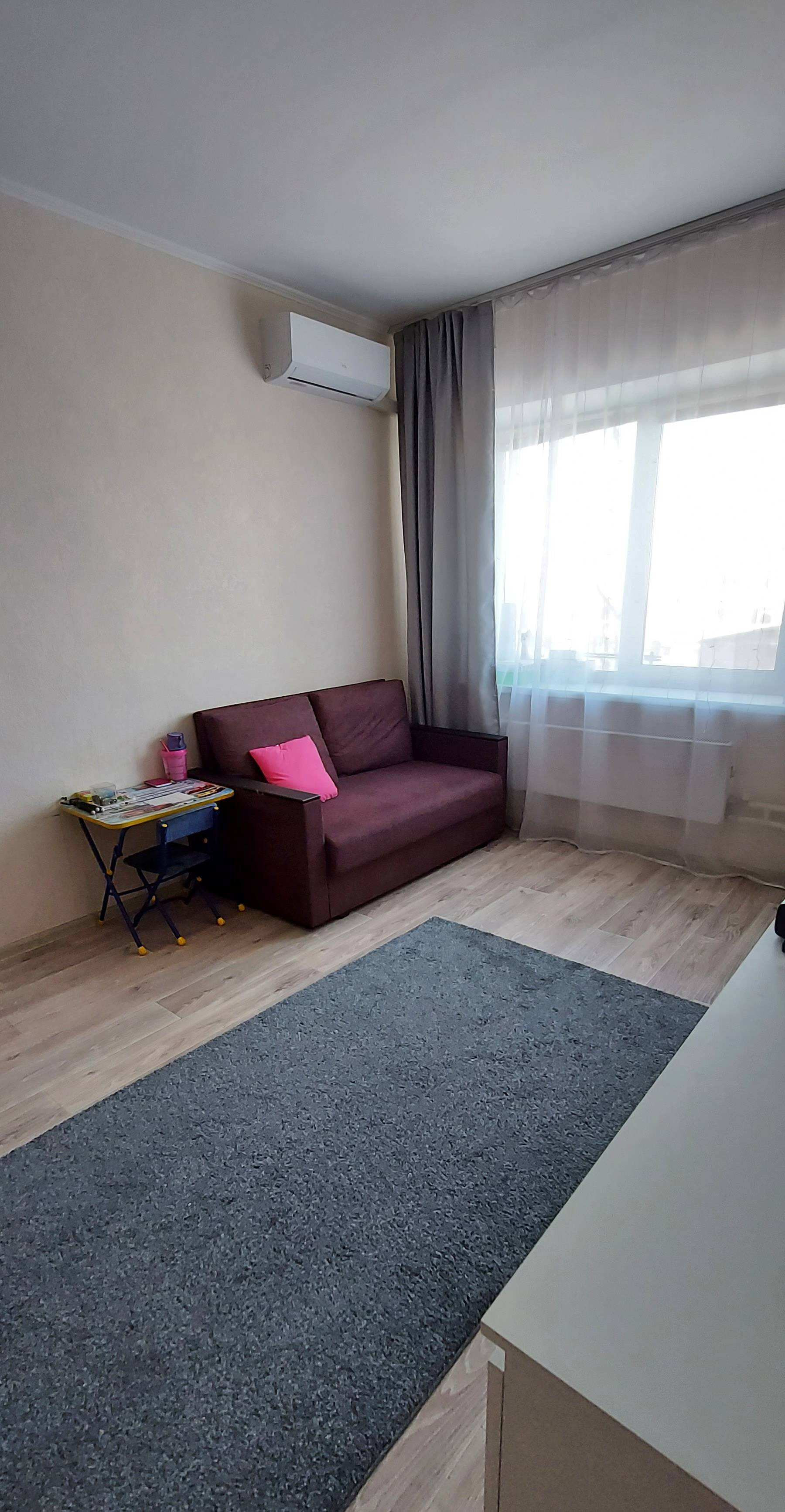 Потрясающая просторная квартира, которую вы легко можете переделать в евродвушку, так как в квартире два стояка - в ванной и в кладовке. Чистая, ухоженная. В квартире кладовка-гардеробная, большая ванная комната с отделкой - декоративная штукатурка, покрытая резиновой краской, кондиционер, антенна, небольшая лоджия. Счётчики до 2026г. Чистый подьезд, дружелюбные соседи,  идеальный этаж! Квартира далеко от лифта, соответственно шума нет. Рядом 2 детских сада, начальная и старшая школы, магазины, тц Алтын, Визави, Весна, сбербанк, транспортная развязка в любую точку города. Дом внутри двора, никакой пыли и шума от дороги. Во дворе большая детская площадка. Никто не прописан. Без обременений. Разумный торг.