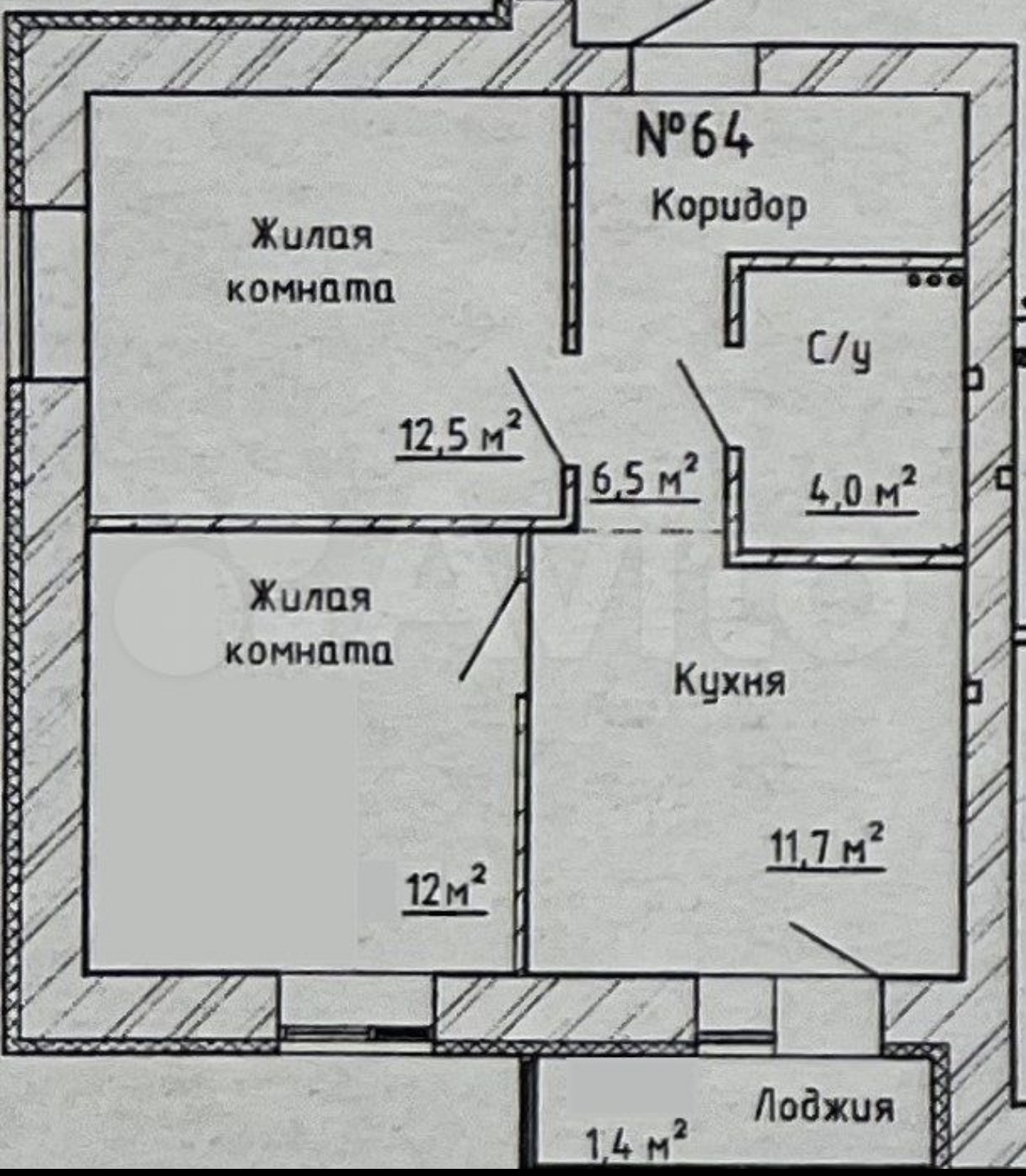 - Две жилые комнаты (12,5 кв.м. и 12 кв.м.)