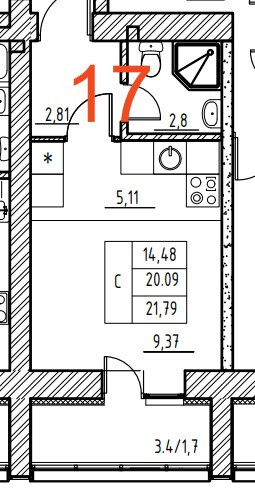 Общая площадь 23 м2