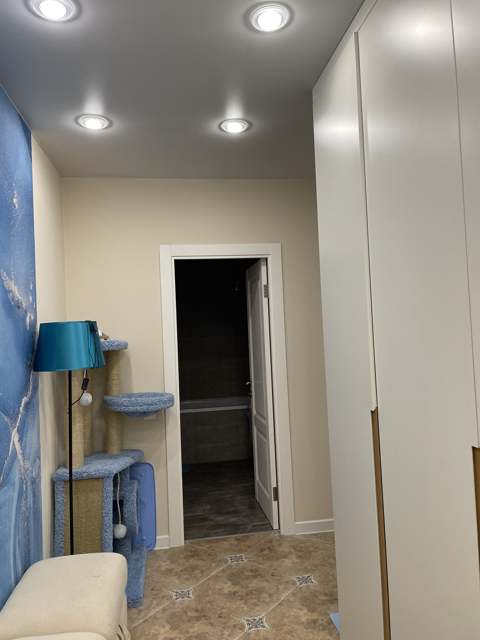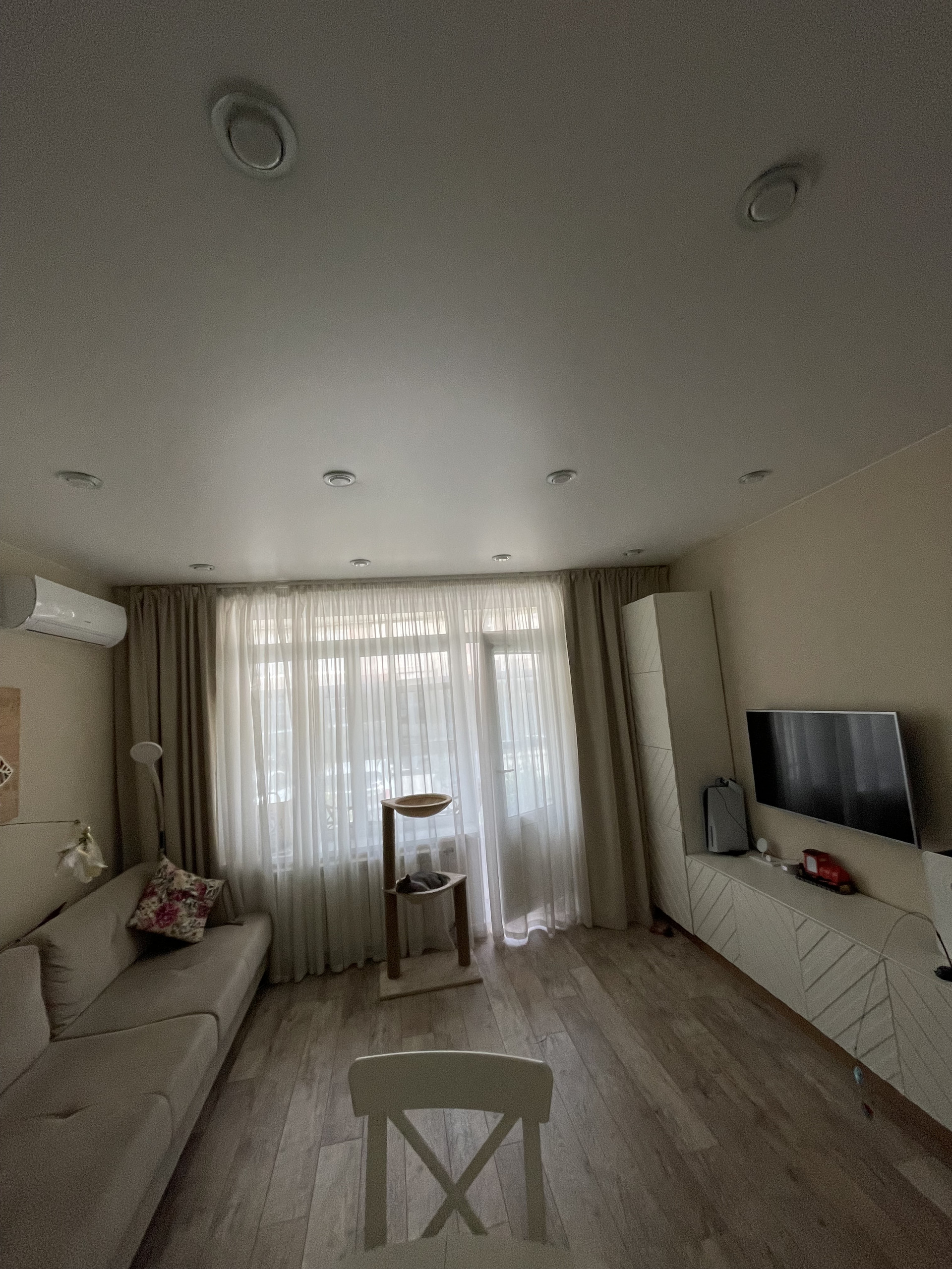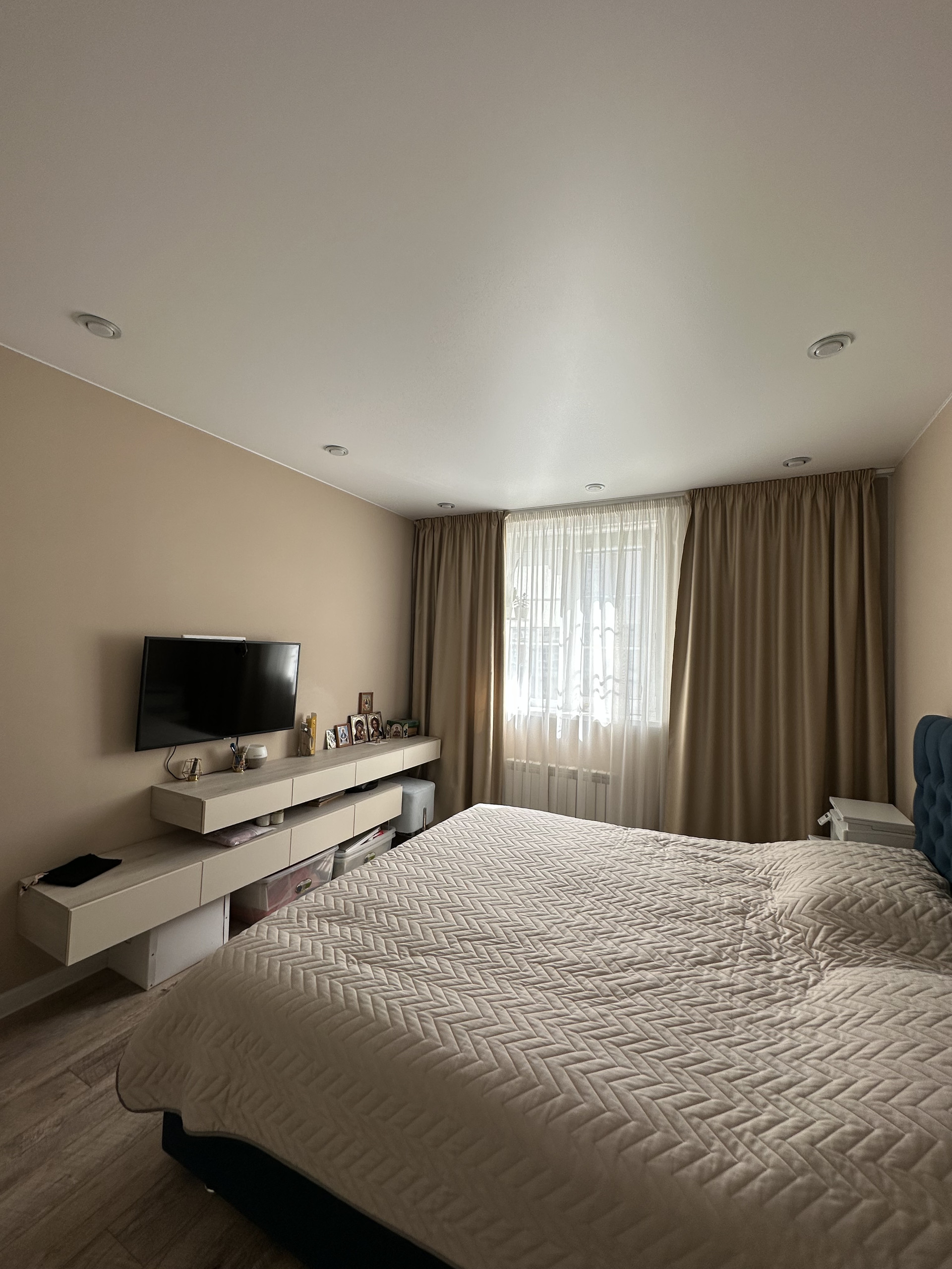 В квартире шумовая изоляция по стенам и потолку, фильтр питьевой воды, кондиционер, домофон с видеонаблюдением, теплые полы, проходные выключатели света. Качественная проводка (можно включать все и сразу). Раздельные свет-вытяжка в санузле. Качественная сантехника. Немецкий ламинат 32 класса. Стены-покраска Caparol.