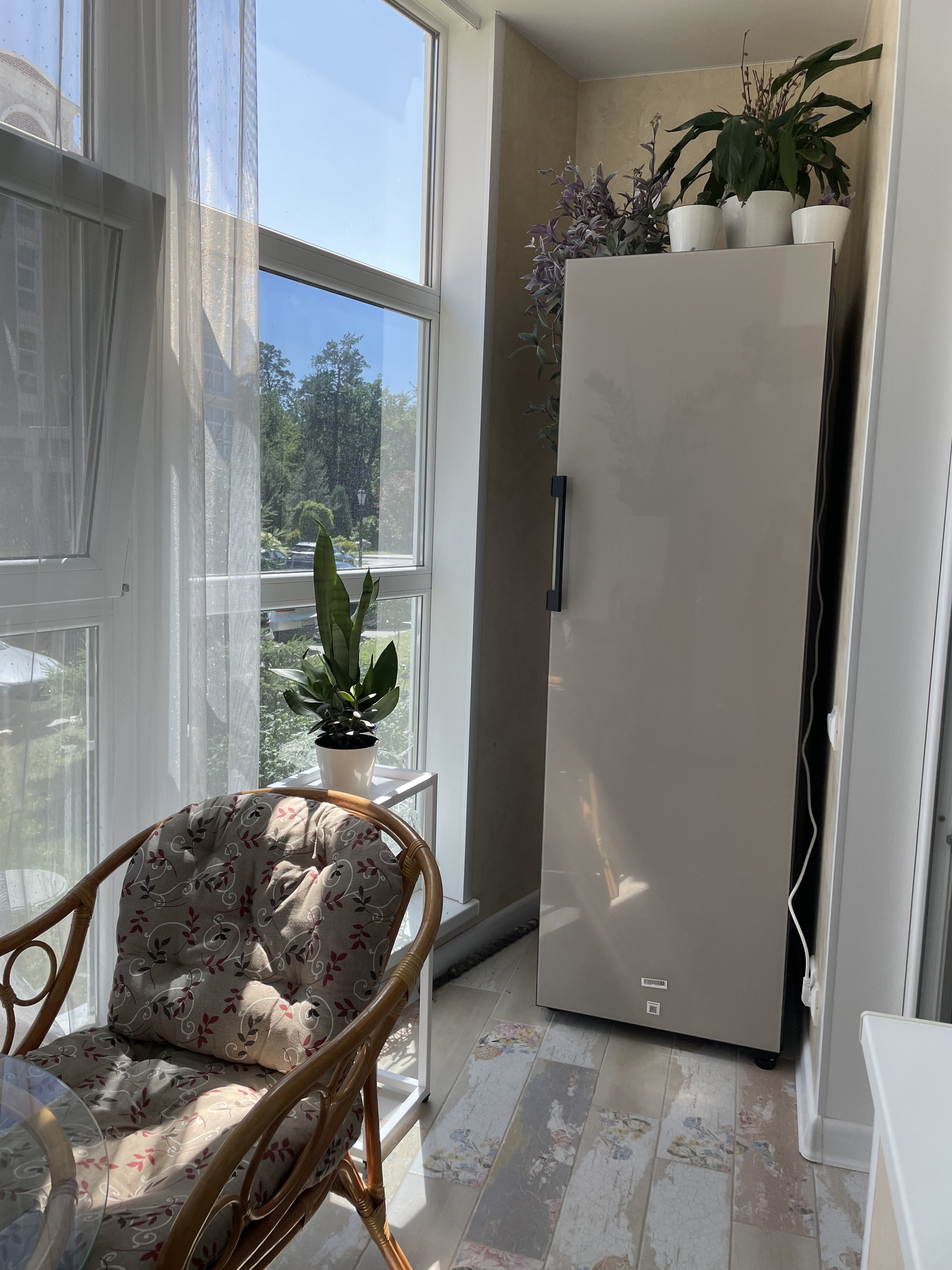 Большая теплая лоджия (+7 м2) с панорамным остеклением. Стены - декоративная штукатурка. Полы дополнительно утеплены, плюс проложен теплый пол. Есть отдельная, теплая кладовая (+9 м2).