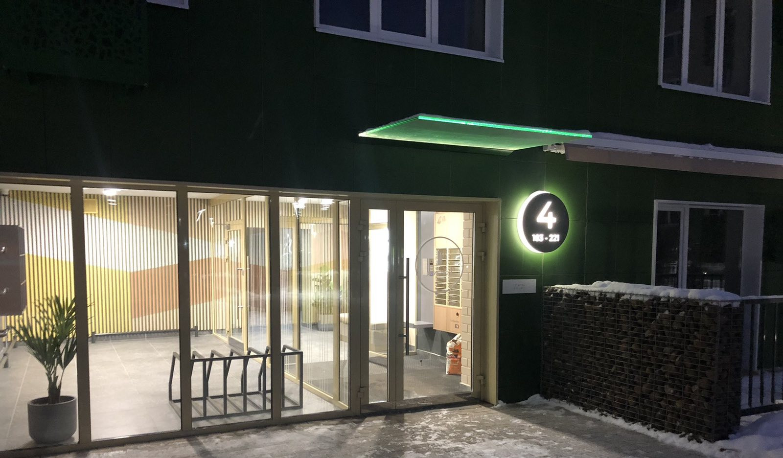 - стены из белого силикатного кирпича с утеплителем и вентилируемым керамогранитным фасадом;