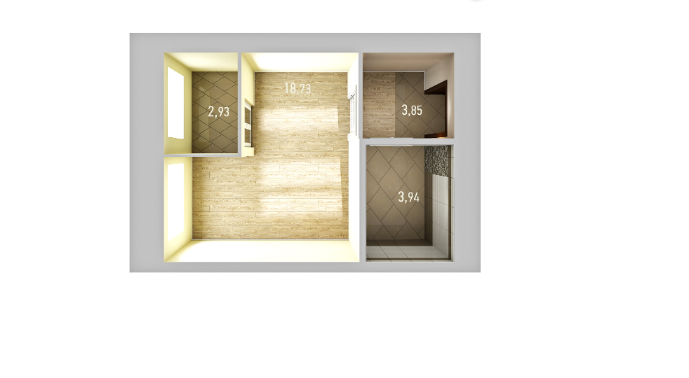 Жилая площадь 18.73 м2