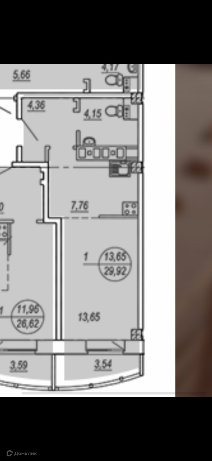 Общая площадь 33.46 м2